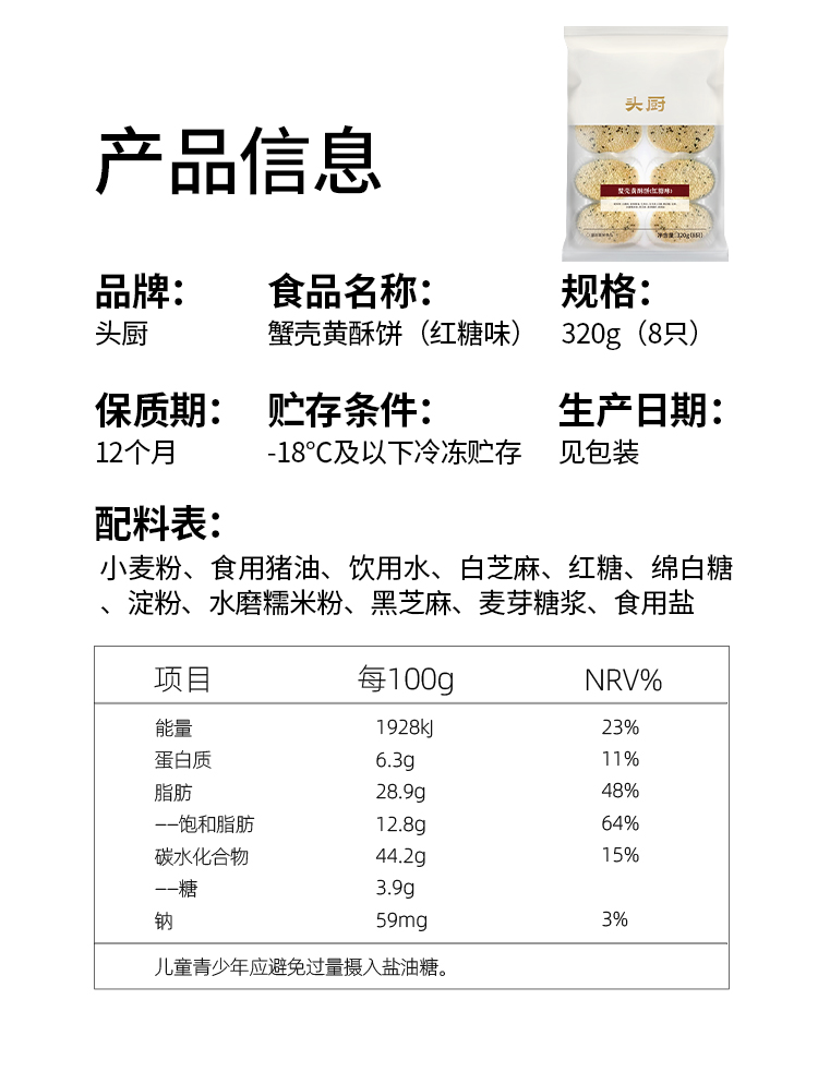 《选项15:蟹壳黄酥饼(红糖味)320g*1袋装》320g/8只/袋-【保质期】360天