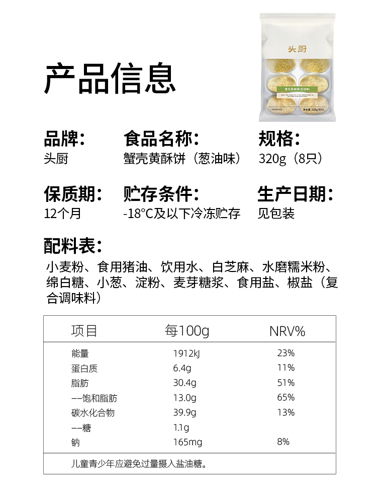《选项16:蟹壳黄酥饼(葱油味)320g*1袋装》320g/8只/袋-【保质期】360天