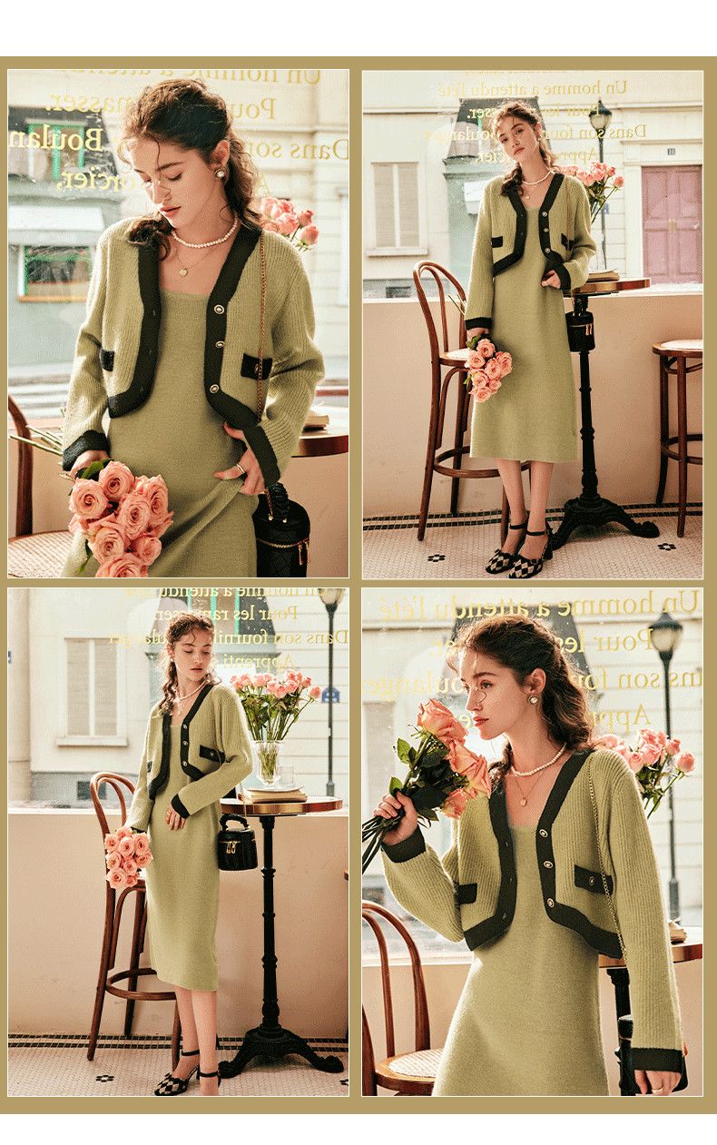 OLrain欧芮儿法式针织时尚套装女冬季2025年新款气质连衣裙两件套