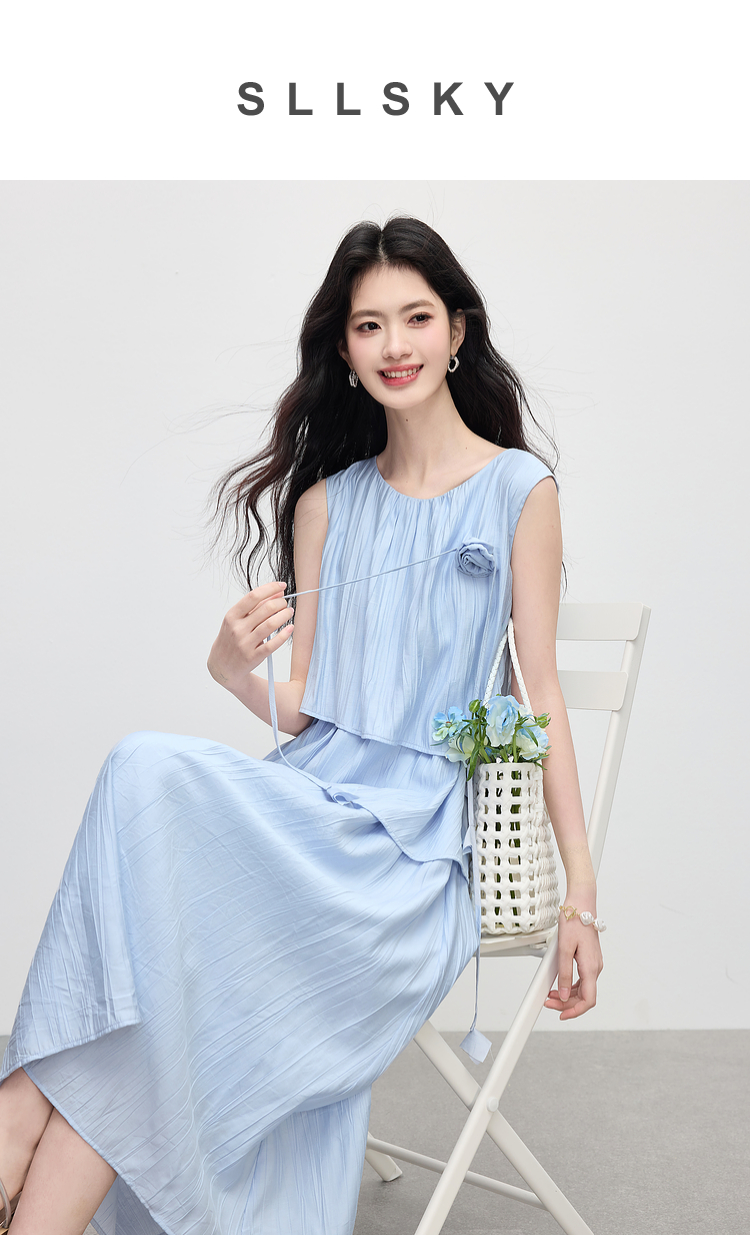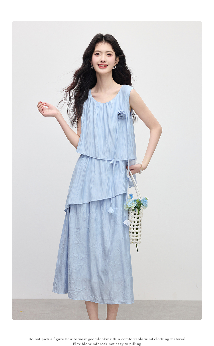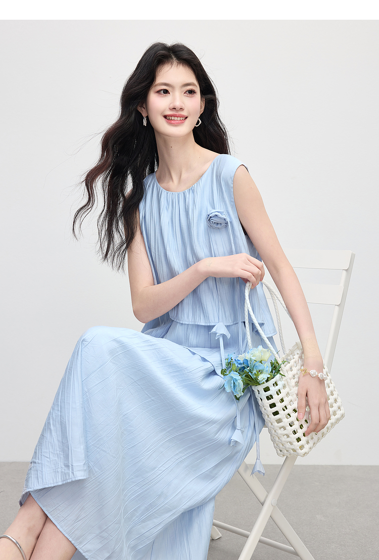 【专属特价】熙世界不规则背心连衣裙女夏季新款小众设计立体花朵无袖蛋糕裙子