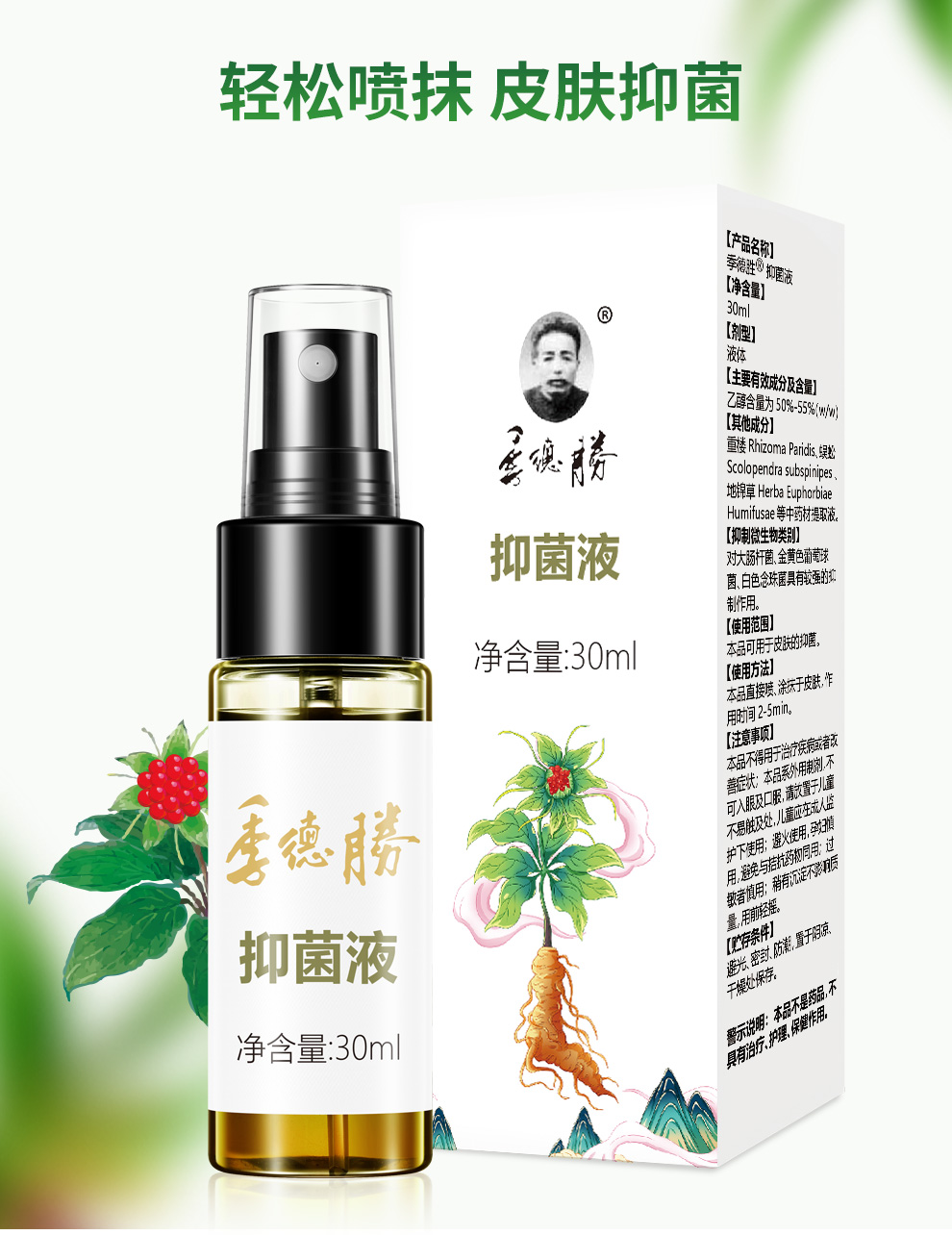 季德胜抑菌液/30ml【针对大肠杆菌,金黄色葡萄球菌,白色念珠菌具有较强的抑制作用】