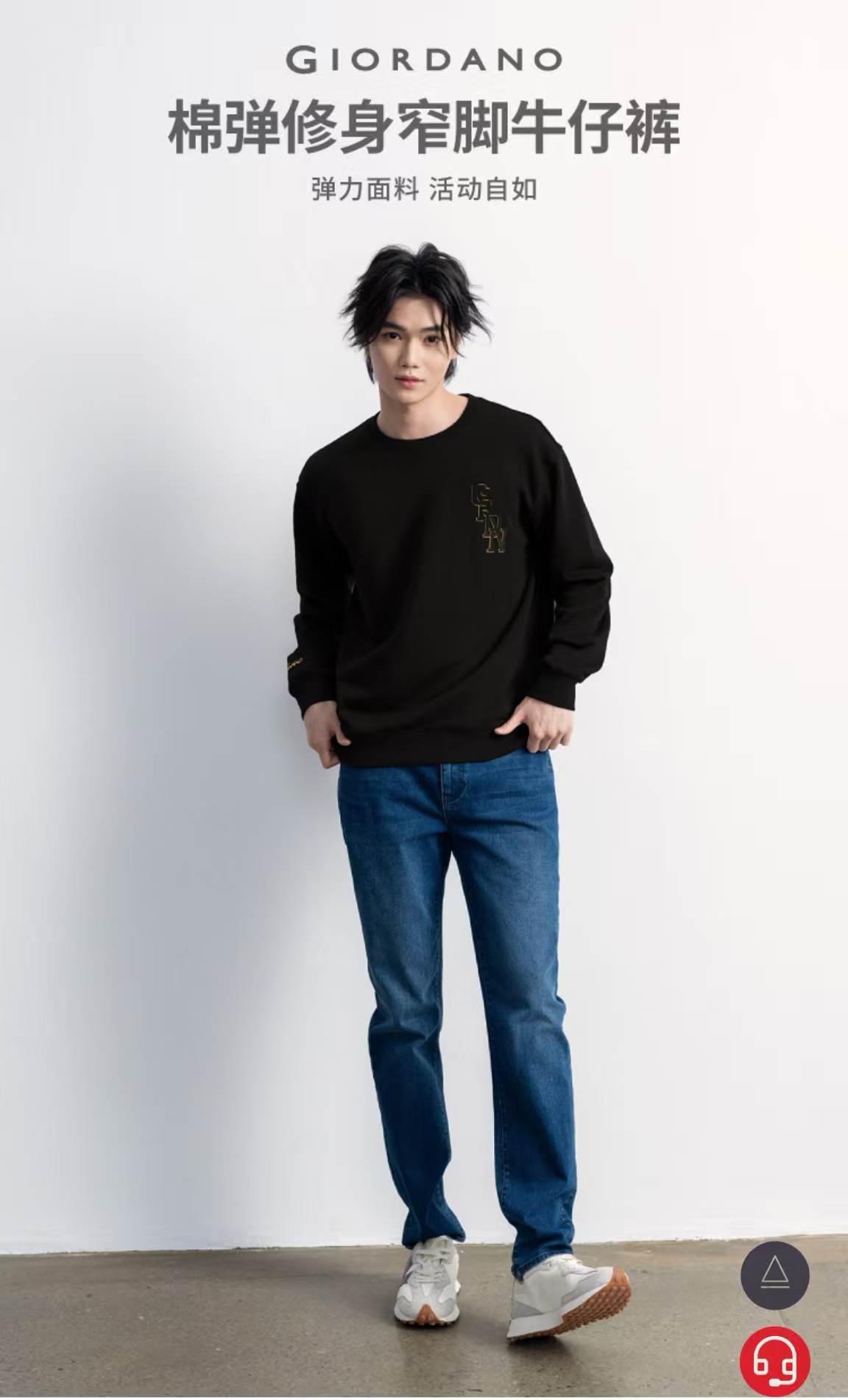 佐丹奴男装25年商场同款棉弹修身窄脚牛仔裤01115044