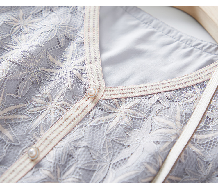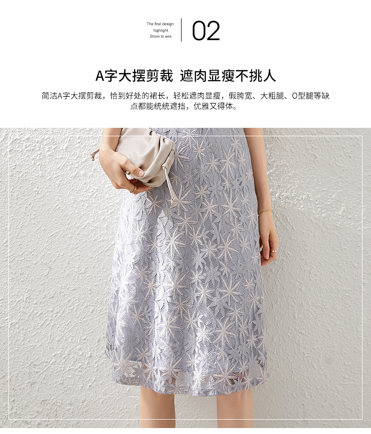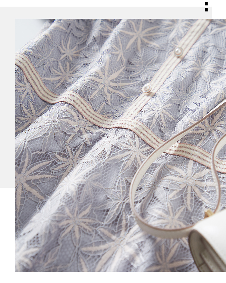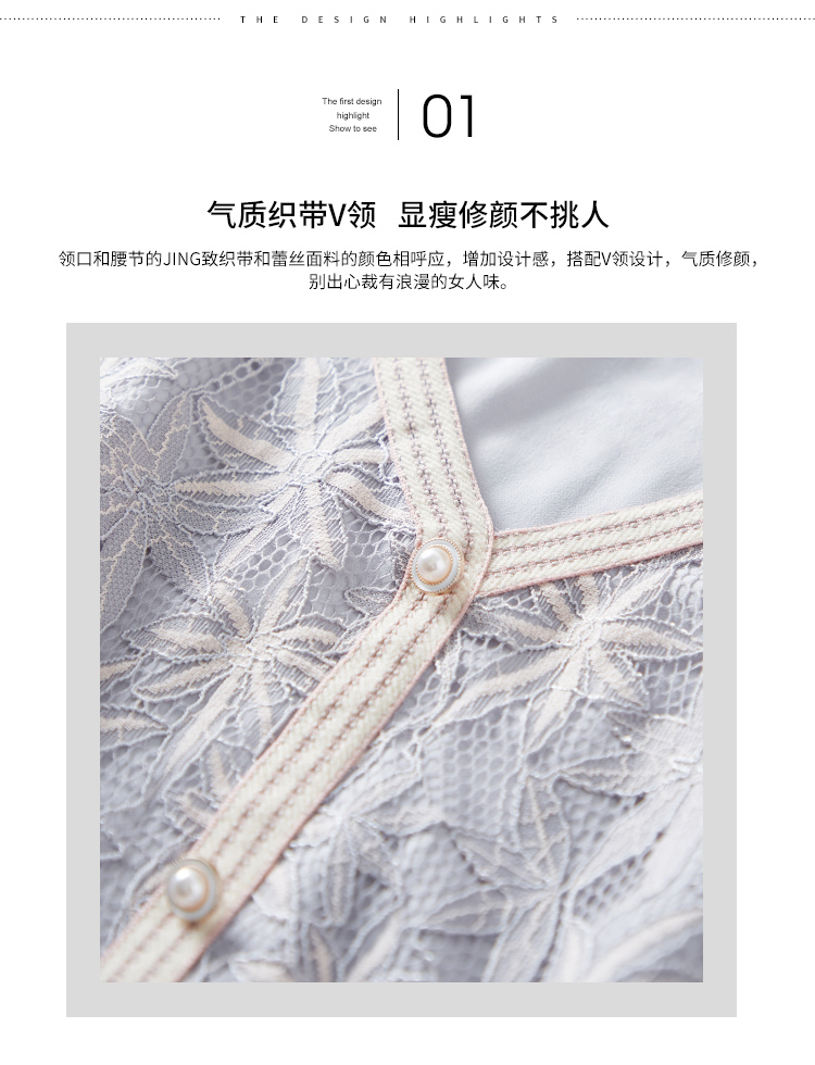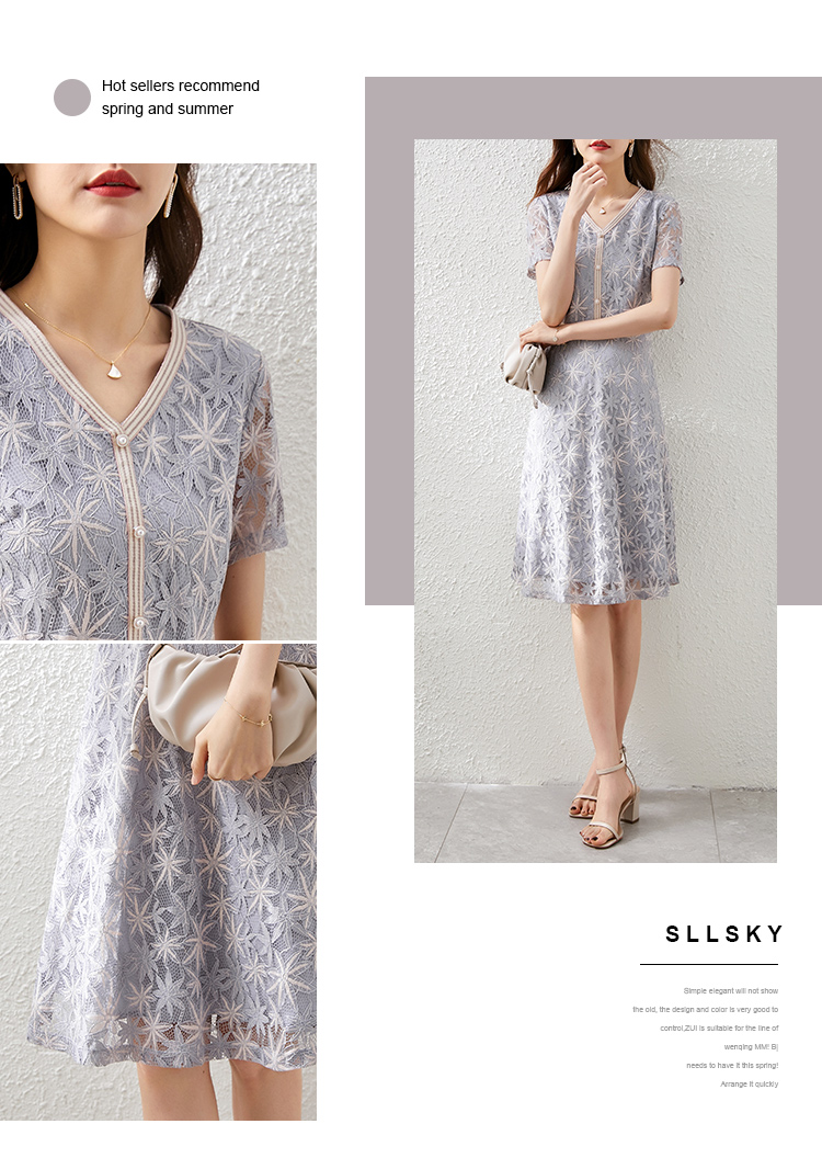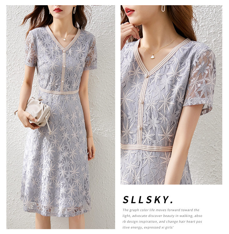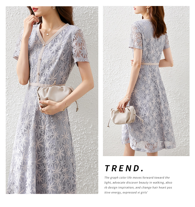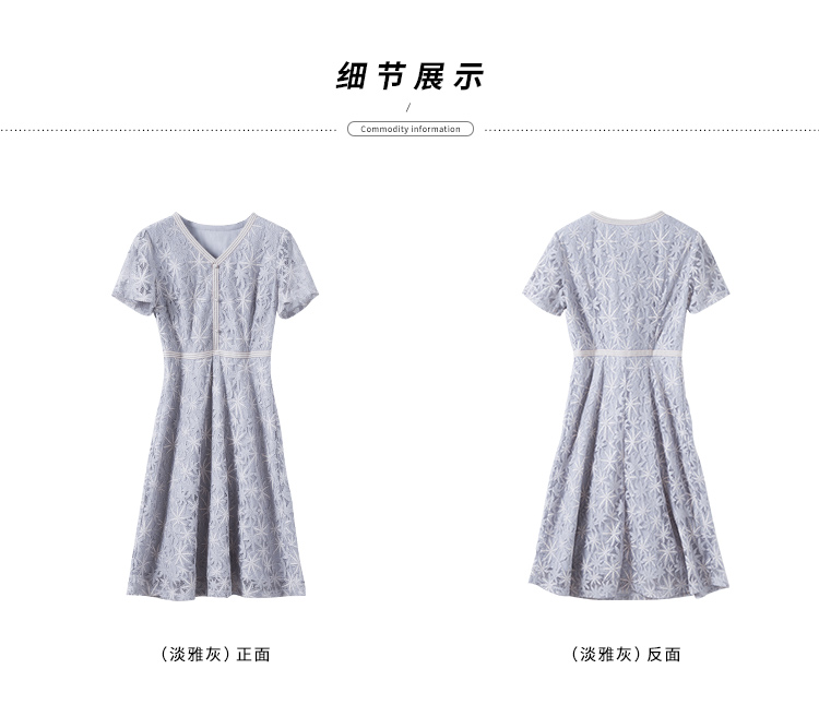 【熙世界】夏装新款优雅气质蕾丝V领短袖连衣裙子女收腰显瘦藏肉