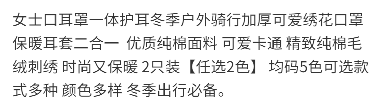 【不惧寒冬 护耳口罩】女士口耳罩一体护耳冬户外骑行加厚毛绒口罩居家日用