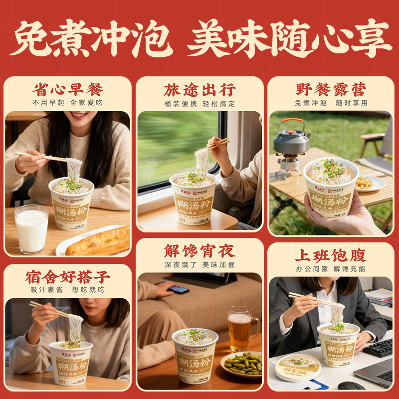 蔡林记免煮糊汤粉胡椒风味方便米粉*5桶(送5包萝卜丁)