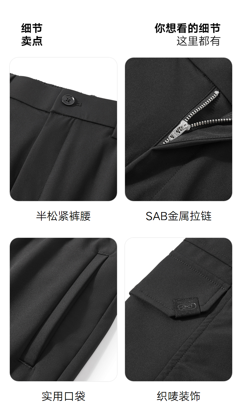 GXG男装 黑色口袋工装长裤男士休闲裤束脚裤 爆款休闲裤24年秋季GEX10225533