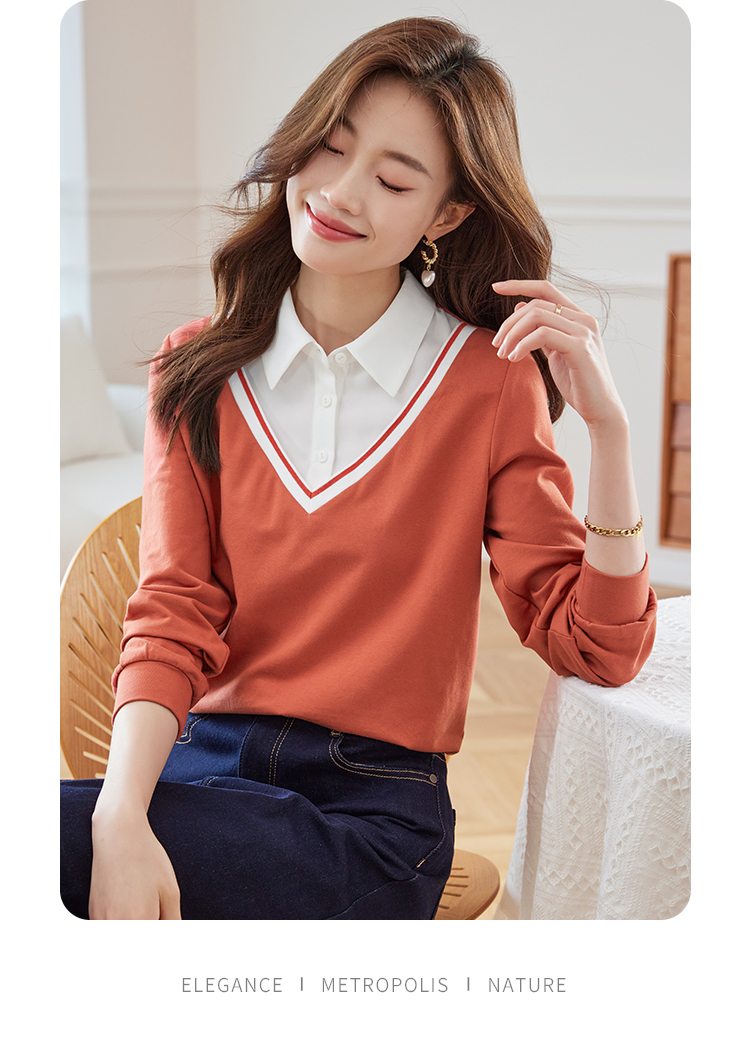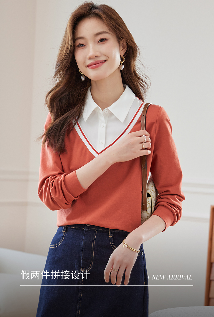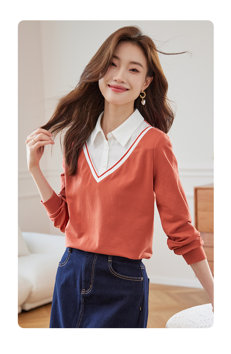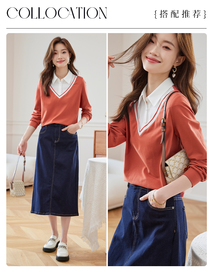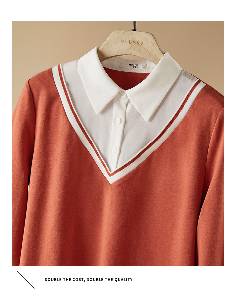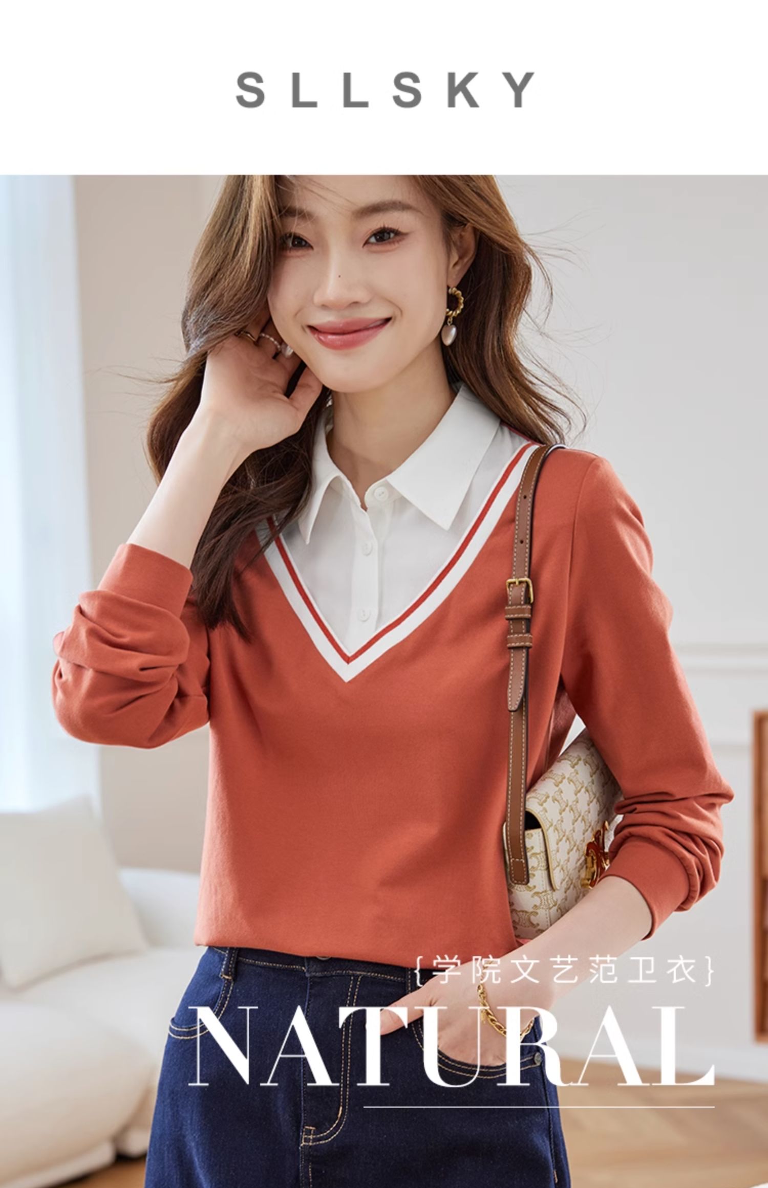 【59元福袋不支持退换】熙世界假两件学院风衬衫领卫衣女秋设计感长袖别致休闲时尚上衣