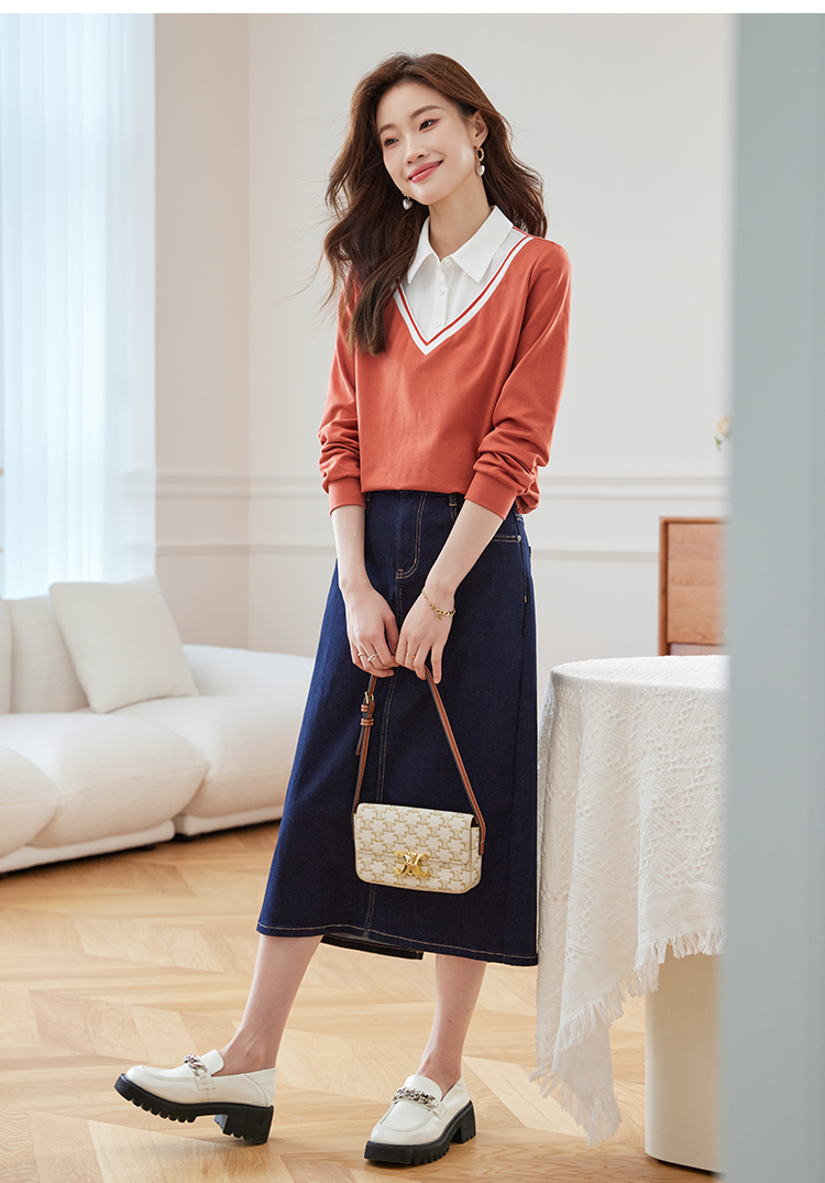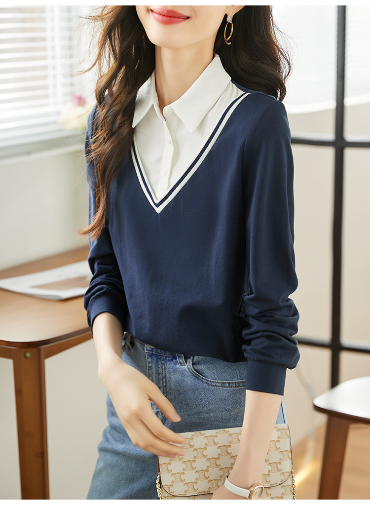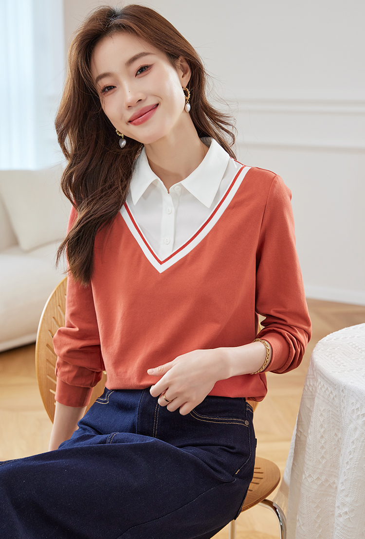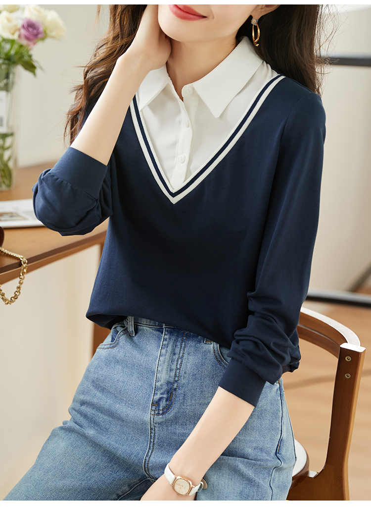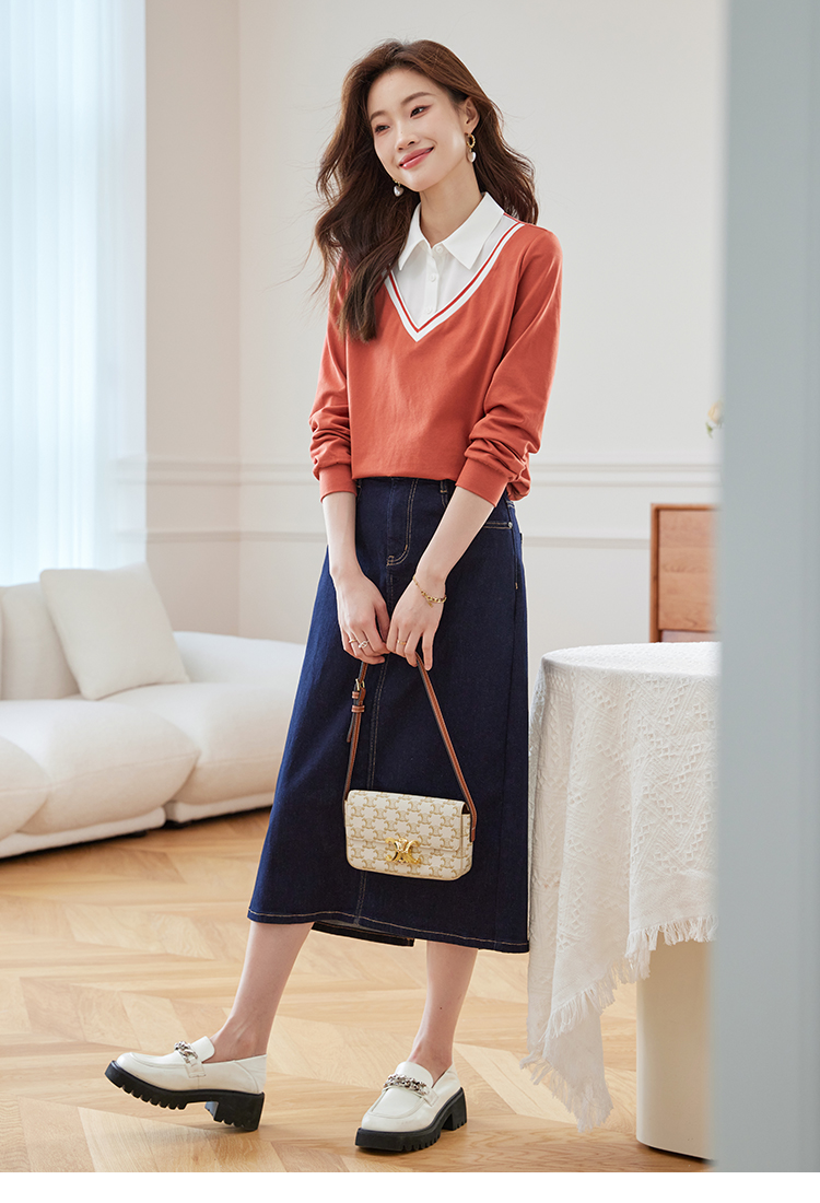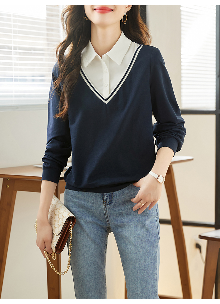 【59元福袋不支持退换】熙世界假两件学院风衬衫领卫衣女秋设计感长袖别致休闲时尚上衣