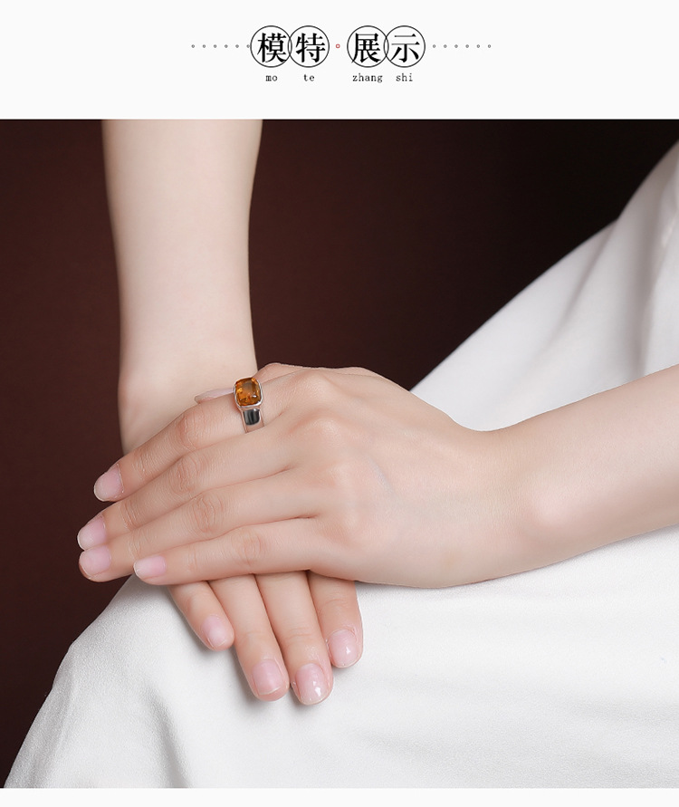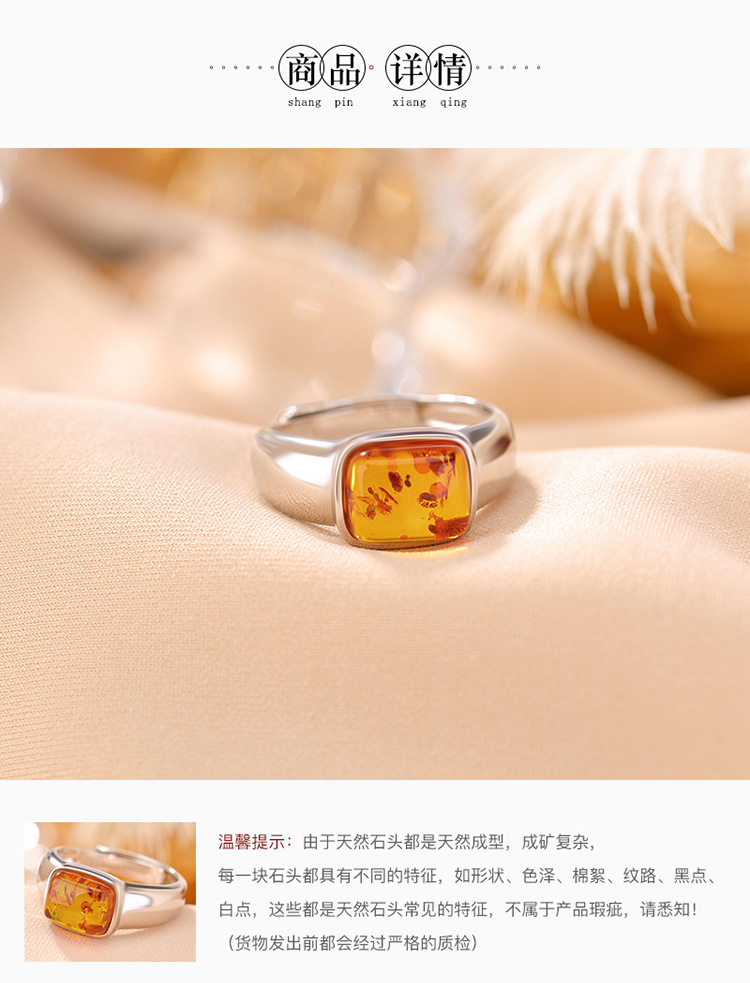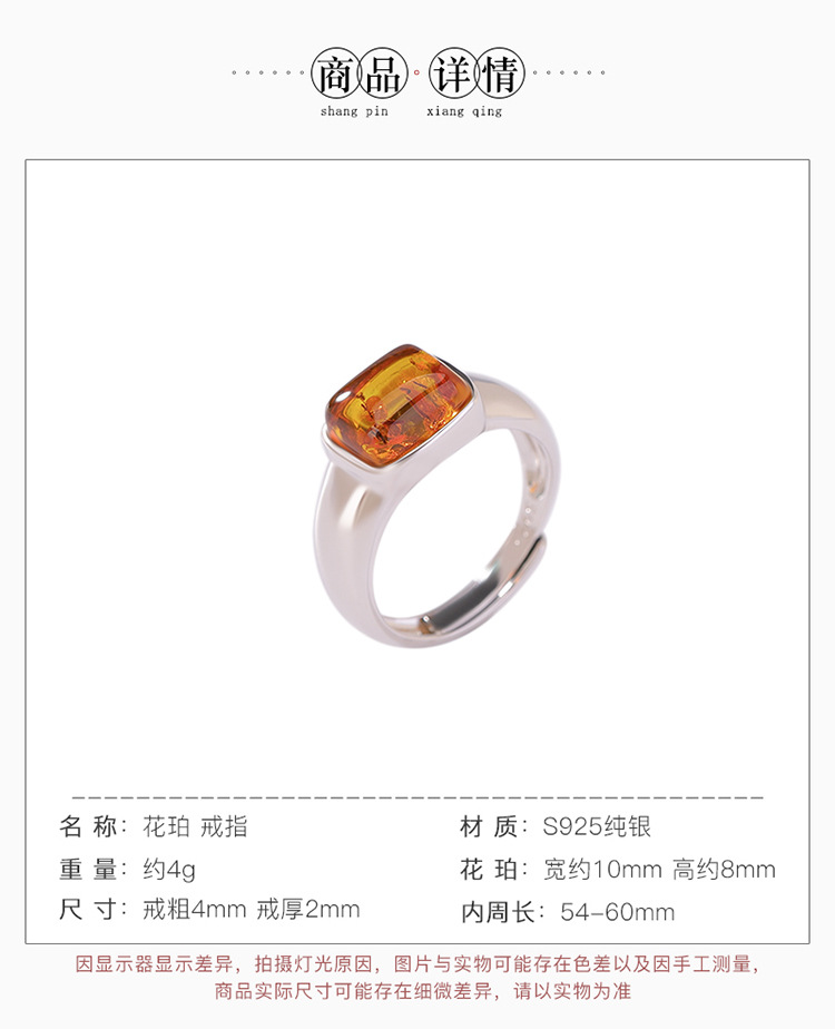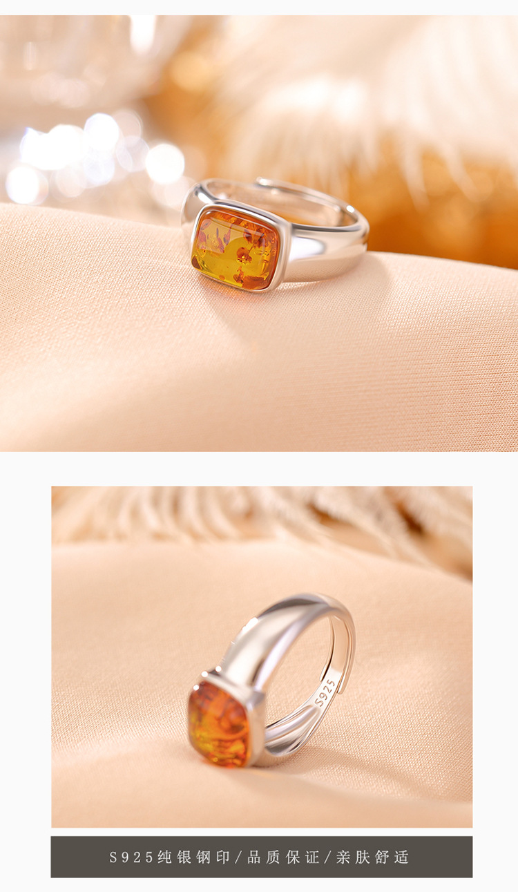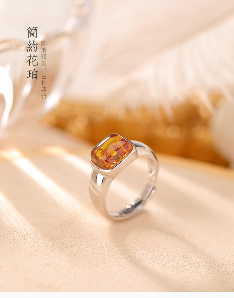 【华露浓】S925银花珀复古轻奢方形戒指【CW- JZ06458】