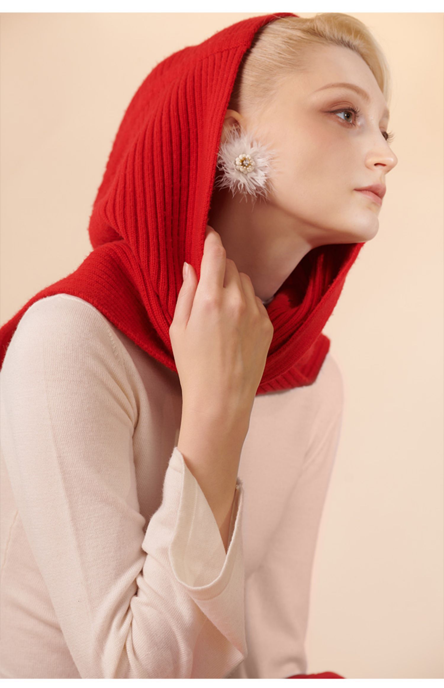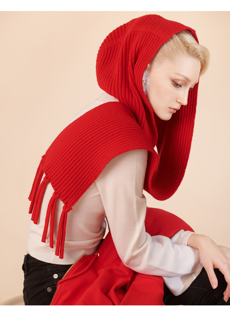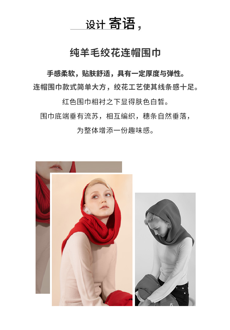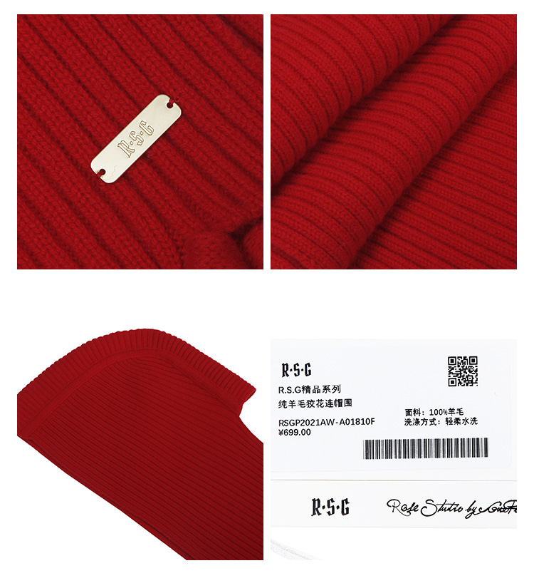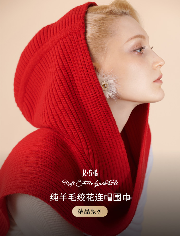 RSG郭培成衣品牌原创设计纯羊毛绞花连帽围巾