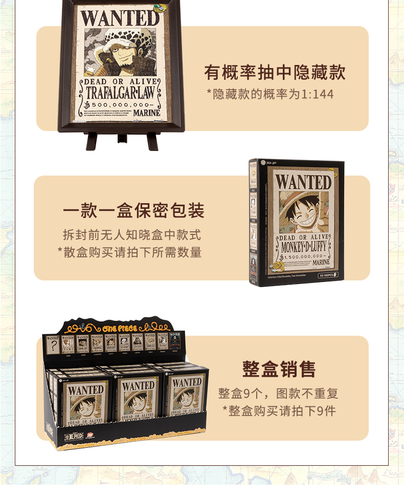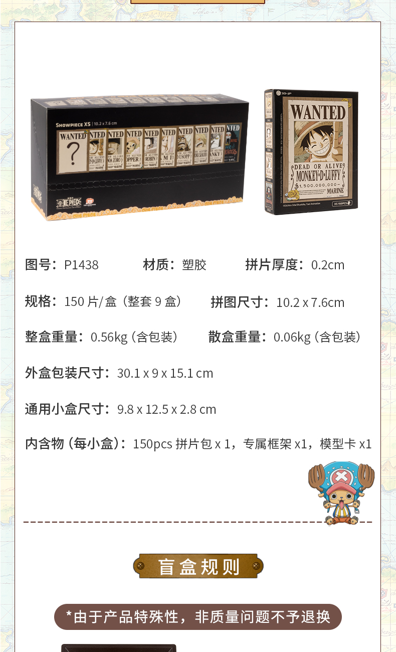 【折扣商品 不退不换】150片 盲盒拼图 塑料拼图 P1438 ONE PIECE-通缉令系列**商品仅剩散盒 介意勿拍