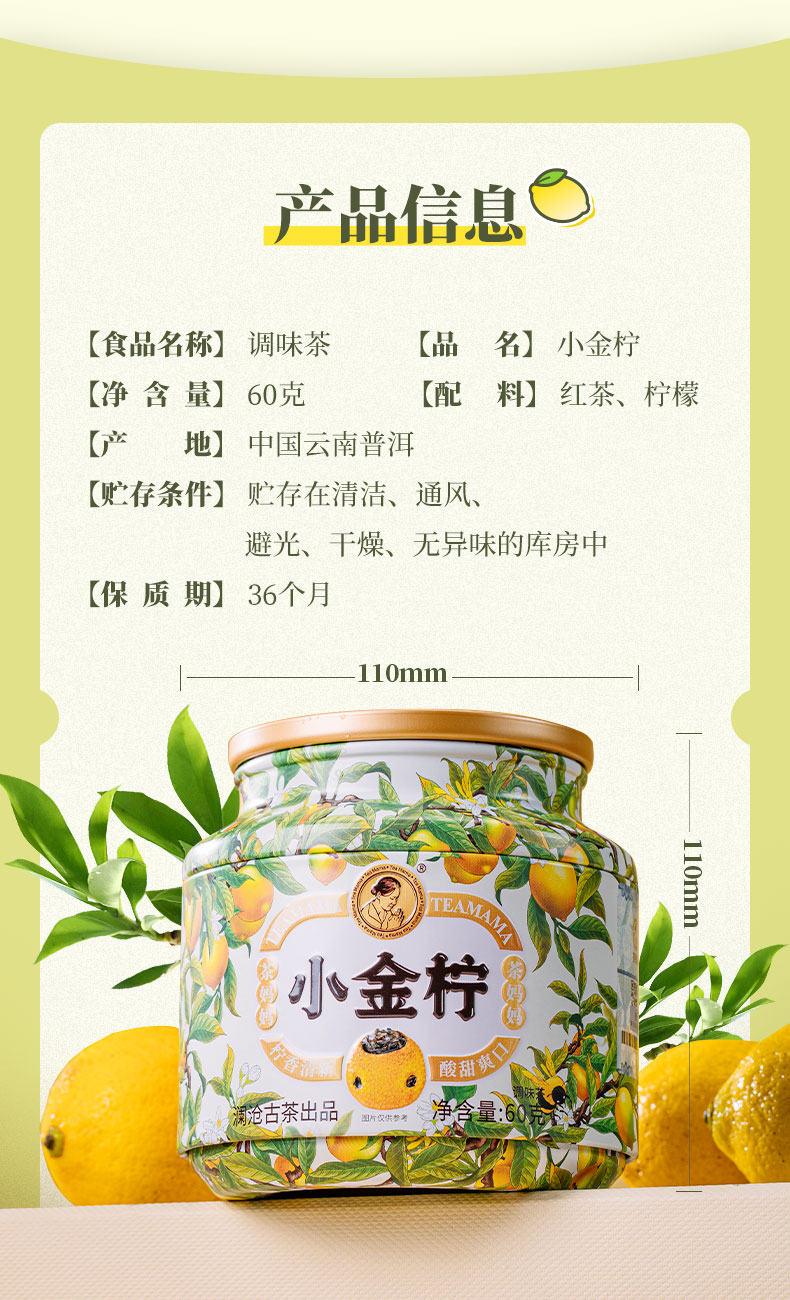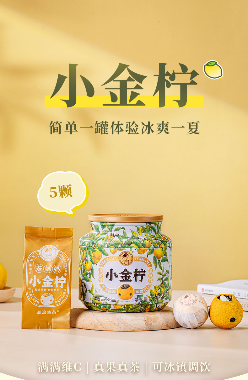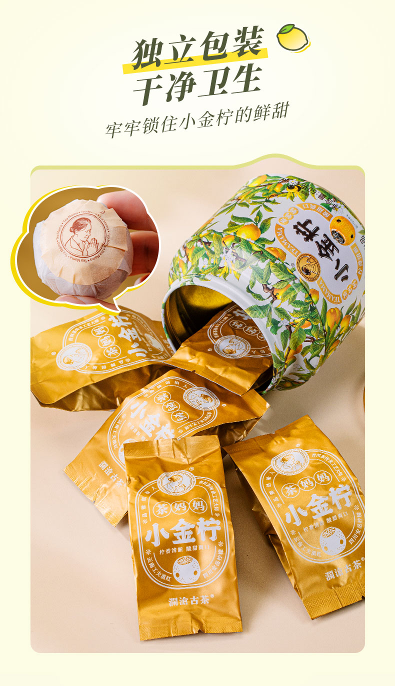 澜沧古茶茶妈妈2024年小金柠云南滇红金芽柠檬红茶果茶5颗装50g