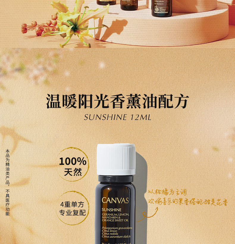 保税直发 CANVAS 卡芬诗 温暖阳光复方香薰精油 12mL
