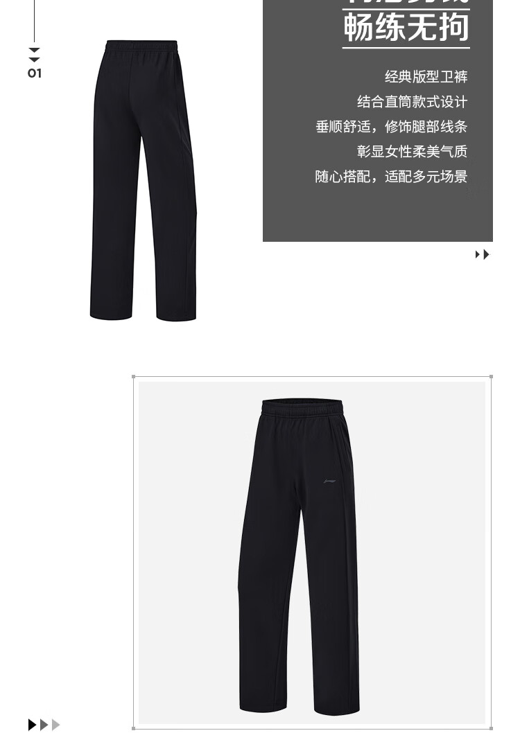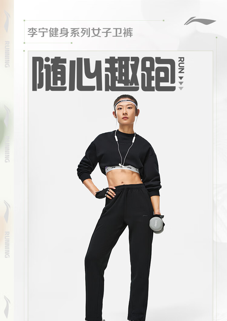 李宁速干凉爽卫裤女子卫裤健身系列LOGO直筒运动裤AKLU108
