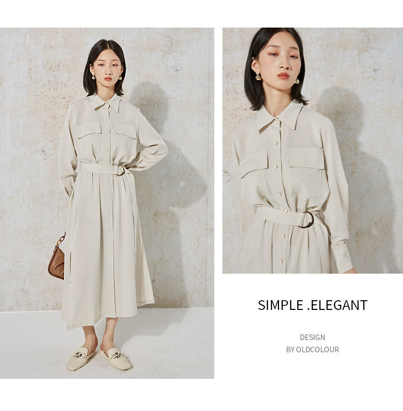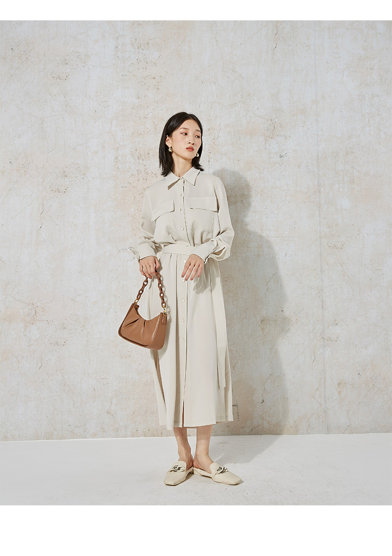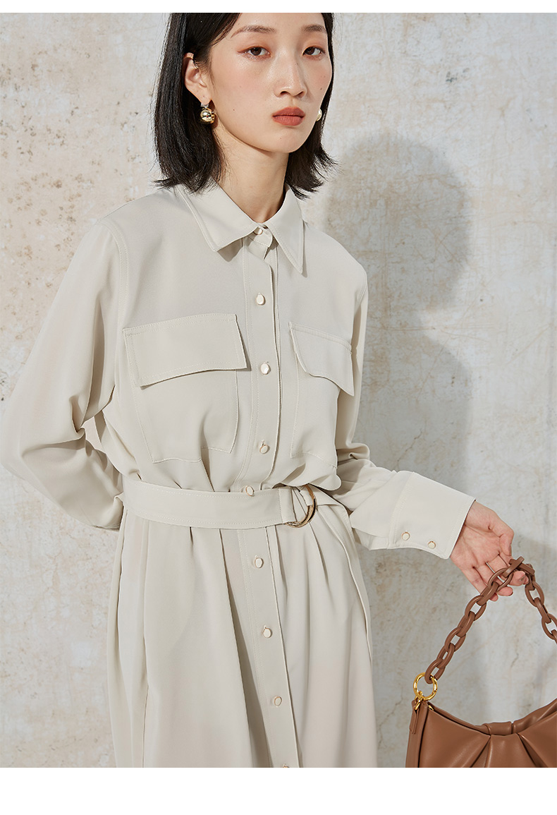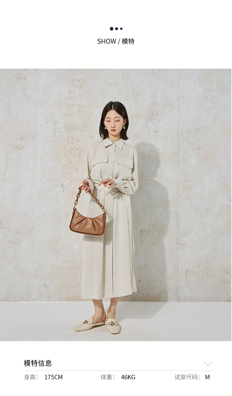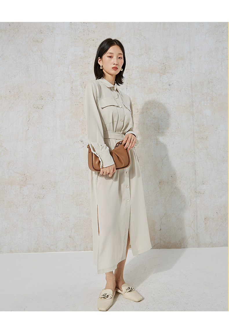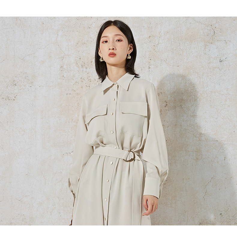 NUTS春秋季新款通勤风气质修身收腰显瘦长袖衬衫连衣裙女231103027B