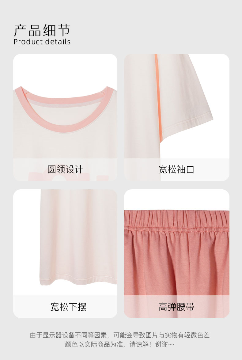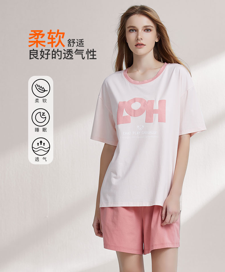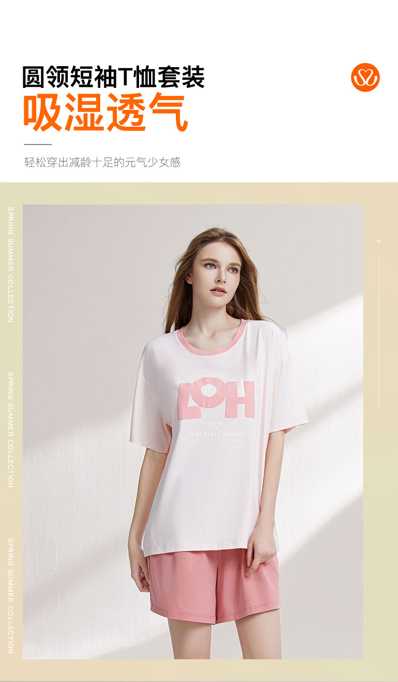 【7.5折限时特惠】【秀黛】女圆领休闲短袖套装棉莫云柔棉糯滑亲肤垂感显瘦廓形女士夏季睡衣家居服W2551069T【门店同款】