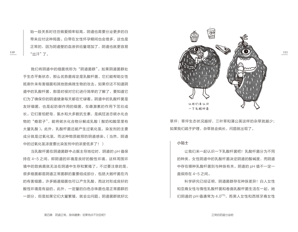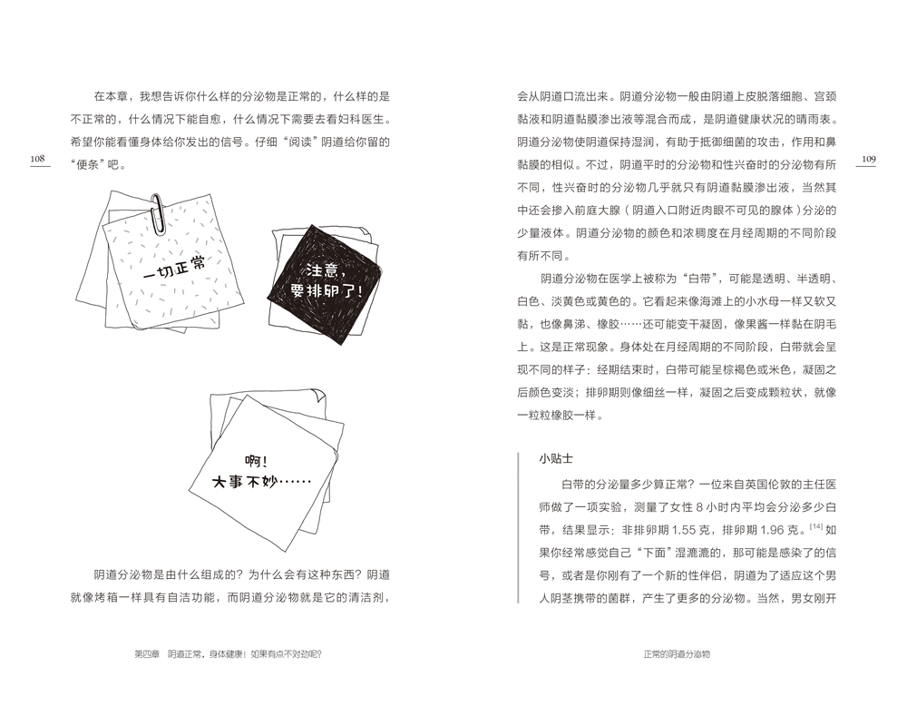 章 比基尼泳裤里的奇妙居民 /1外阴解剖学/1阴蒂——一位深藏功与名的女英雄/6阴唇——从“芭比娃娃式”到“蝙蝠女侠式”/12阴道口——开门大吉/19阴毛及其造型——美式、巴西式还是日式? /24第二章 性爱与那声销魂的“哦”/33女性的身体在性交时发生了什么? /33刺激阴道还是阴蒂?还是都行? /43自己的快乐自己给/46爱之殇——当性交造成疼痛/49做爱不如追剧? /59前路茫茫—— 无法达到性高潮怎么办? /66第三章 月经——一场暗潮涌动的红毯秀/73正常的月经/73你看到的我是红色的——当月经过多时/78又来了?——如果月经来得太频繁/82痛经——你还是一枪毙了我吧! /89怎么还不来?——“大姨妈”迟到的原因/91“血淋淋”日子里的专属用品/96经期行鱼水之欢? /104第四章 阴道正常,身体健康!如果有点不对劲呢? /107正常的阴道分泌物/107外阴瘙痒/112胯间的“海鲜铺子”——如果外阴有异味/119“沙漠之花”——如果阴道过于干燥/122“地板”坏了——生完孩子后,有些事不一样了/126第五章 前男友的“大礼”——性病/131HPV——奏响疣的“交响乐”/132单纯疱疹病毒——一旦感染,反复发作/137衣原体——“悄悄地进村,打枪的不要”/140淋球菌——“买一送一”/143浑水摸鱼的滴虫和支原体/145凶险的病原体——“霸天虎”“异形”和“终结者”/146第六章 你的身体是令人神往的圣地/153阴道/154宫颈和宫颈癌的预防、筛查/155子宫/160输卵管/162卵巢/163子宫肌瘤、卵巢囊肿和子宫内膜息肉/166早孕——来吧,我的小宝贝/177如果不孕怎么办? /184第七章 女性性激素的“好莱坞”/187正常的生理周期——和“霹雳娇娃”同行/187经前期综合征——月月嗥叫的“狼人”/199围绝经期或更年期——燃烧的岁月/201无助拜拜!激素替代疗法和健康地老去/211更年期又如何?我还是一样酷! /225第八章 避孕——胎儿请勿上车/229激素避孕法——服用避孕药及其他/230非激素避孕法——使用避孕套及其他/247自然避孕法——酷女孩之选/253第九章 乳房——有关这对突起的一切/255乳房自查——是果冻型还是大米布丁型? /257乳房良性病变/260乳腺癌/267无论是丰乳还是贫乳,都是好乳/272第十章 比基尼泳裤里的其他居民——膀胱、尿道和肛门/275膀胱和尿道/275肛门/281“后门”来客友善吗? /284第十一章 妇科就诊小技巧/285妇科医生实际在做什么?预防! /287时间、爱与温柔/291写在后/295致谢 /297参考文献/299
