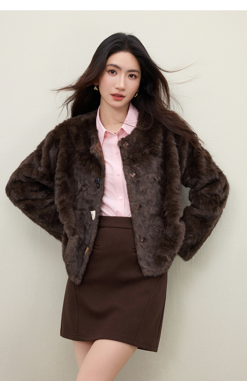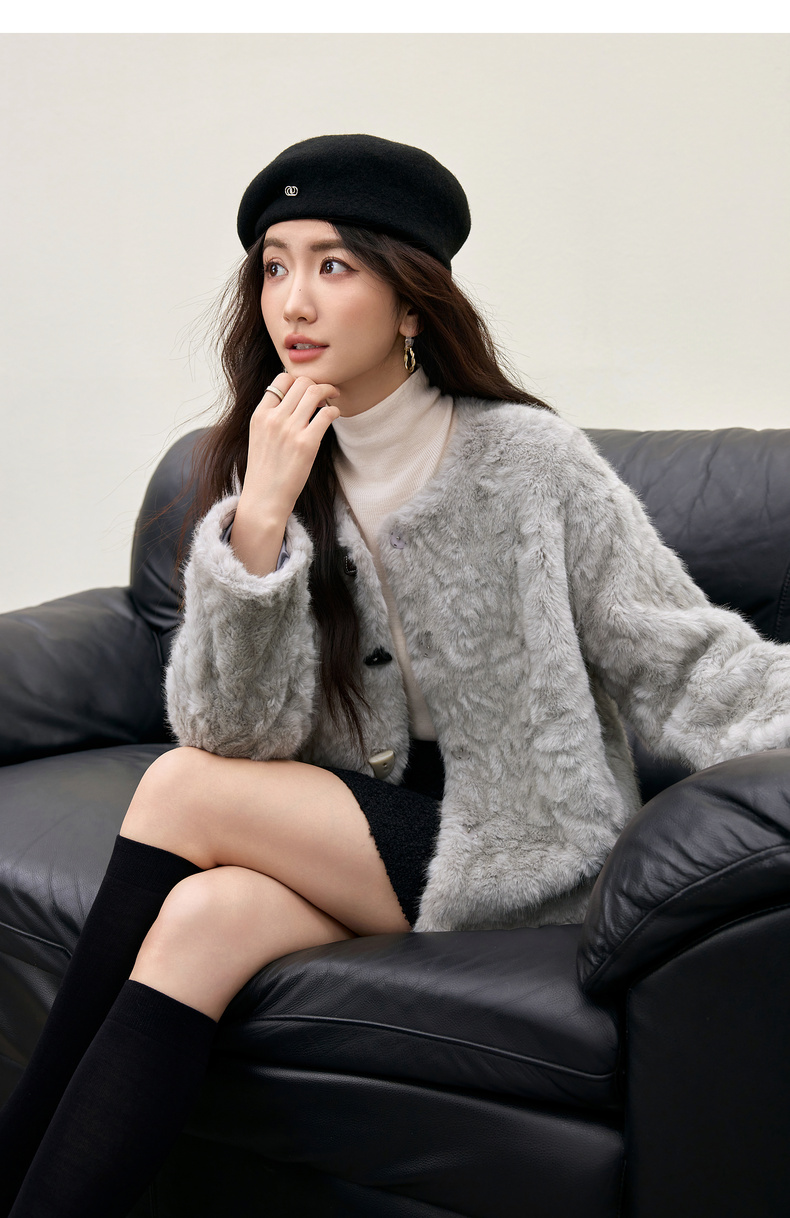 【内购】【聚暖抗冻】时尚洋气奢感圆领撞色异形扣宽松显瘦厚皮毛绒外套-Q54PD4427