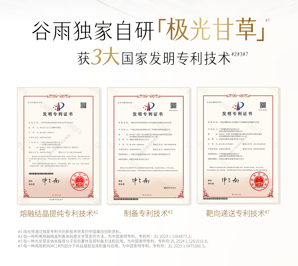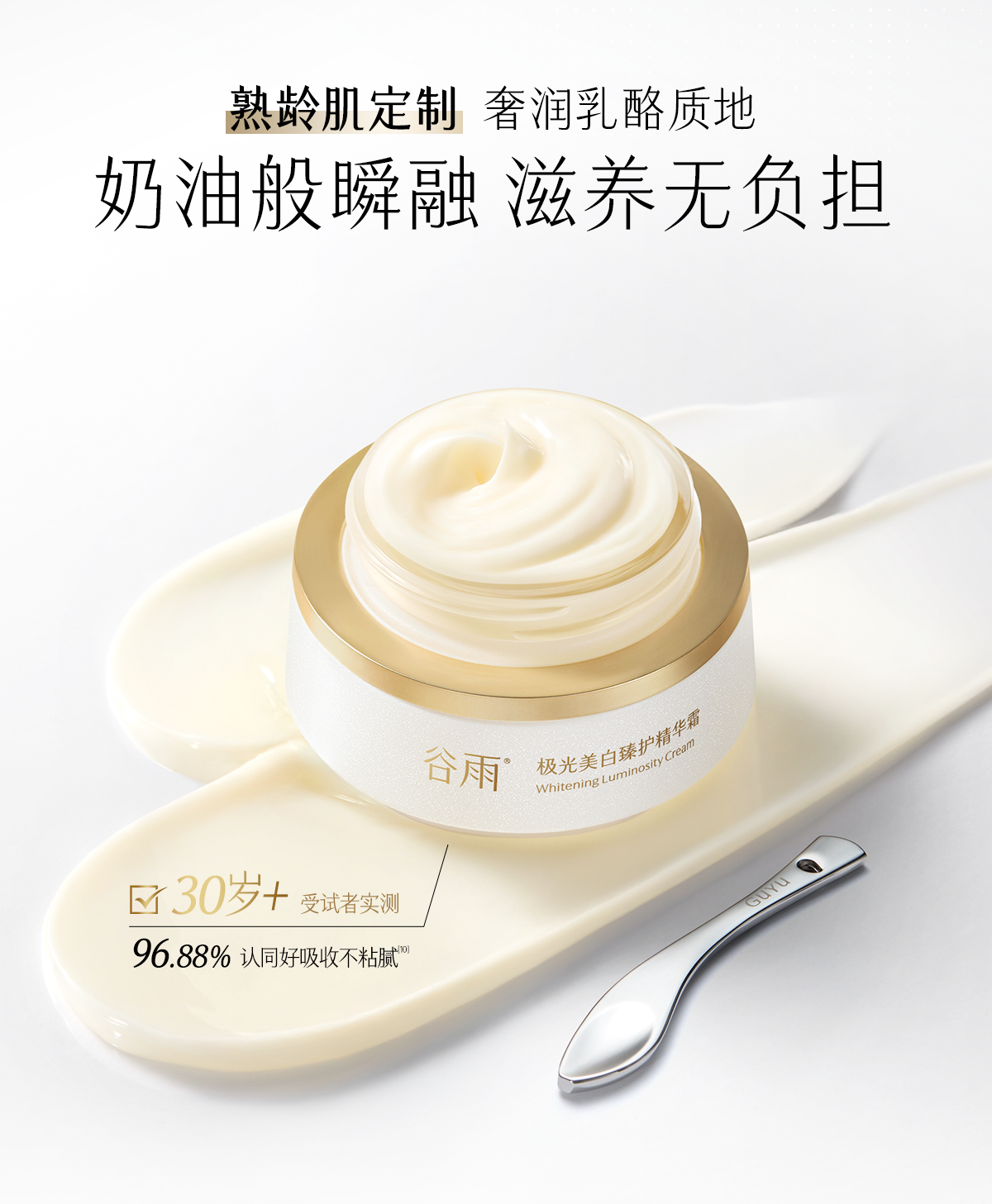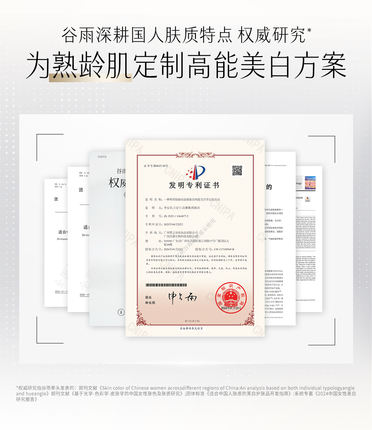 - 谷雨,更适合中国人肤质的植萃美白。专研中华珍稀美白植萃光甘草定,深入研究中国人肤质特点,打造中国女性独有的仙气白。