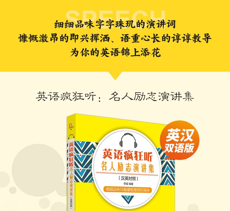 【正版新书】英语疯狂听 名人励志演讲集 英汉对照 英语口语自学书 英语听力书 口语900句教材听力训练日常交际外贸商务发音秘诀书