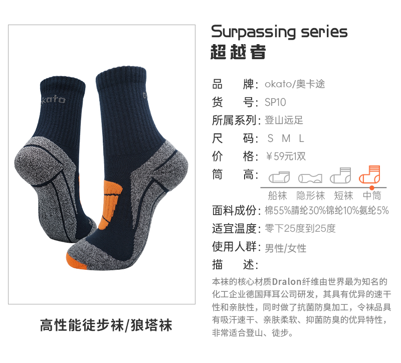 okato奥卡途 【3双装】超越者 人体工学设计 速干防臭 高性能 徒步袜SP10