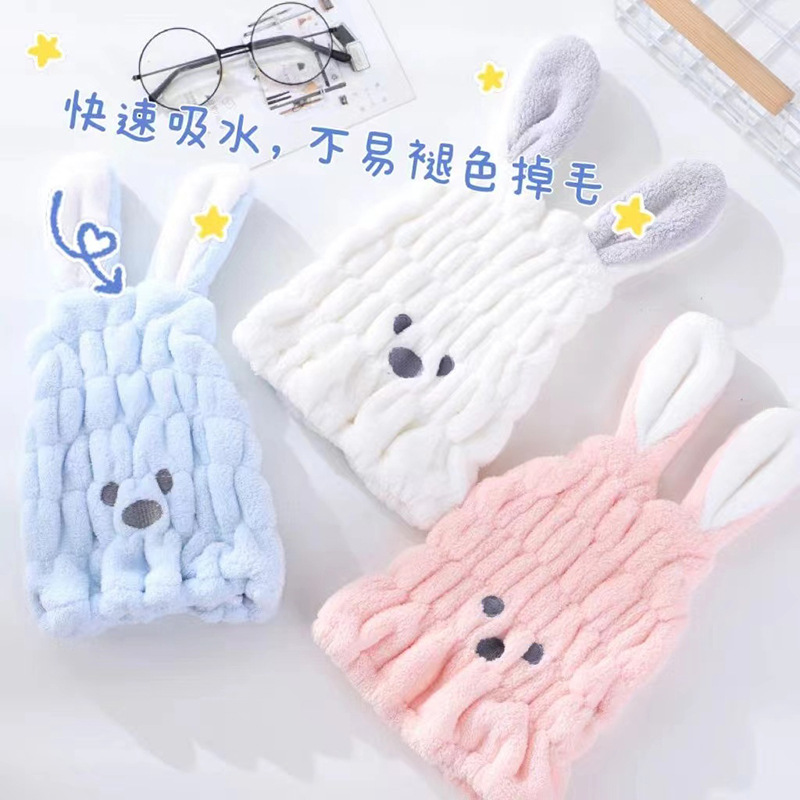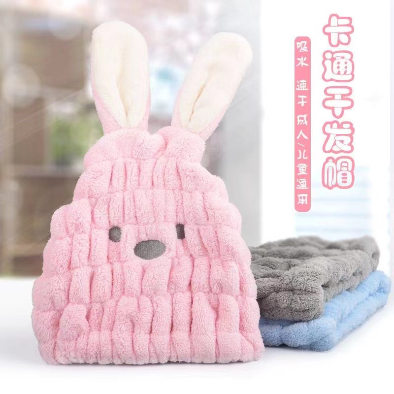 秋冬季【儿童干发帽】速干可爱兔耳浴帽 加厚吸水 卡通宝宝包头发帽子