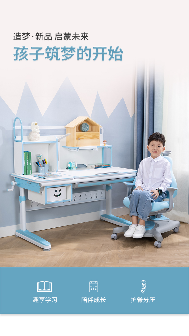 爱学习学习桌儿童书桌椅子简约可升降写字桌家用课桌学生桌椅套装