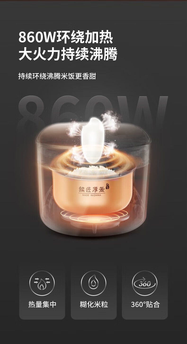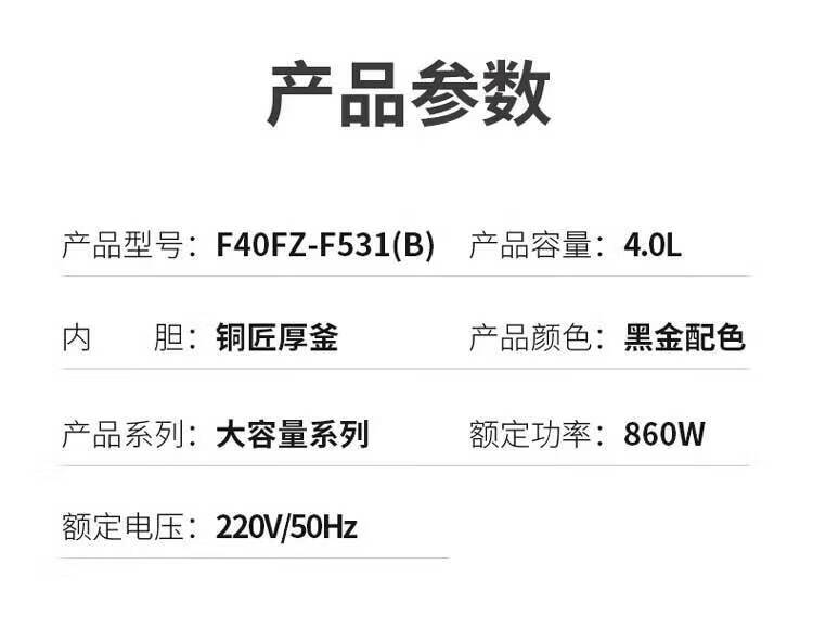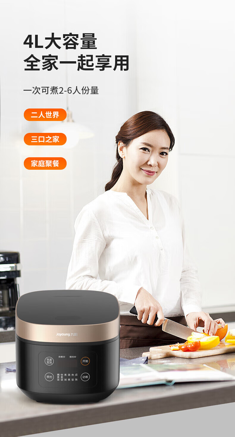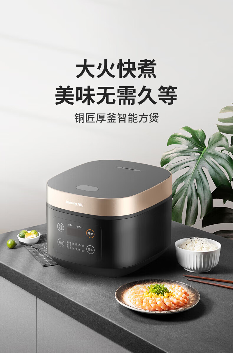 九阳(Joyoung)4升智能电饭煲_F40FZ-F531-B大容量铜匠厚釜内胆可预约【K】