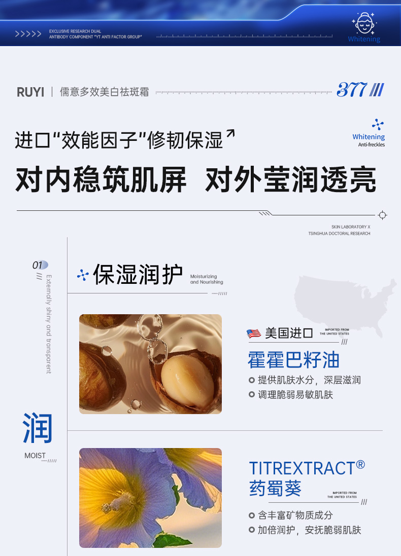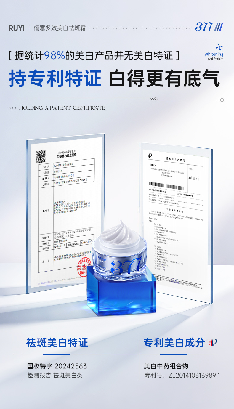 儒意多效美白祛斑霜50g 377美白祛斑霜保湿滋润补水淡化色斑褐斑雀斑|儒意官方商城