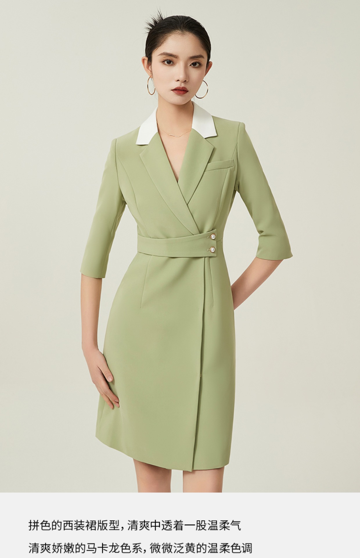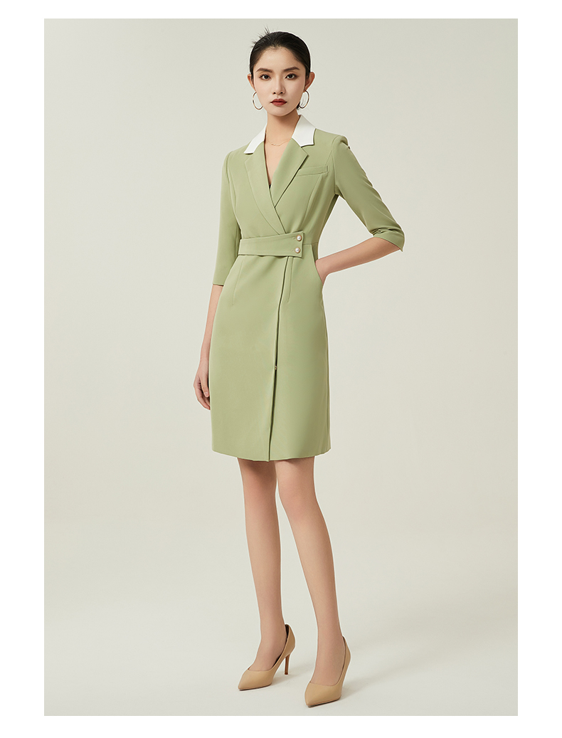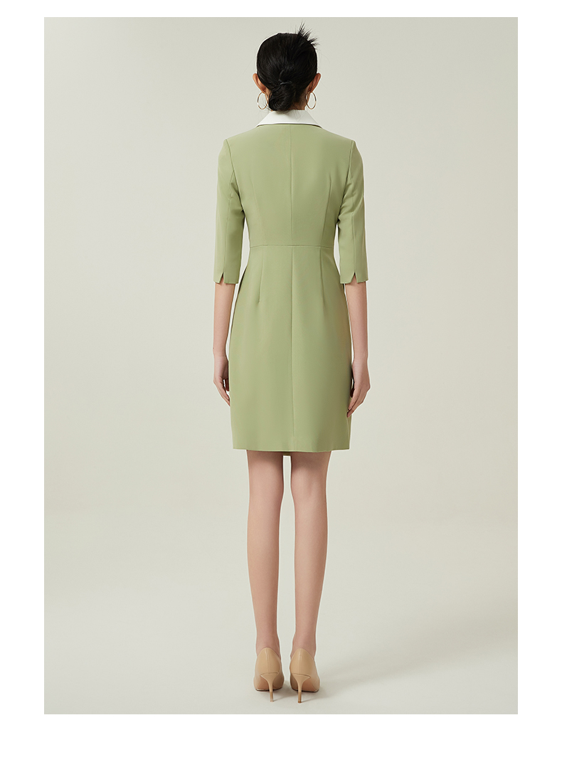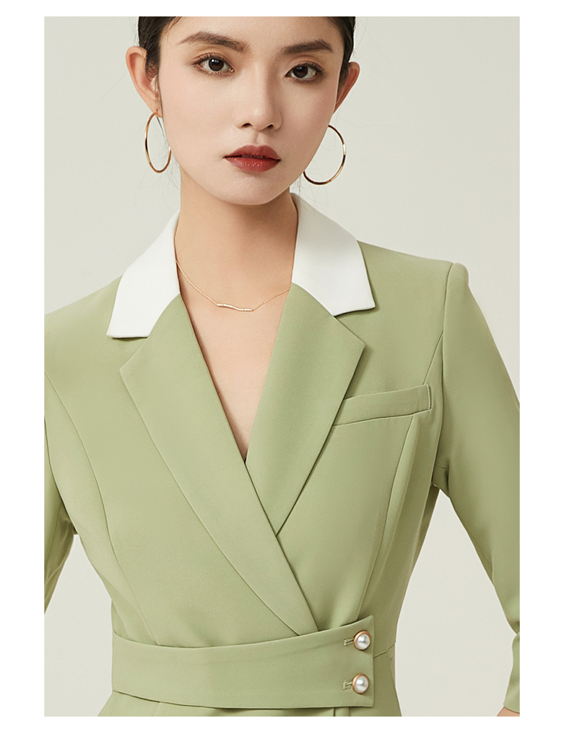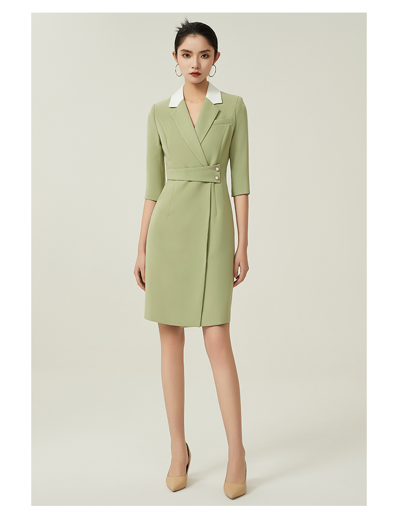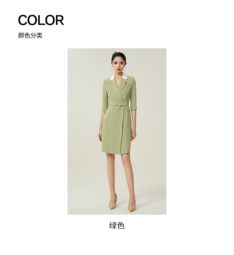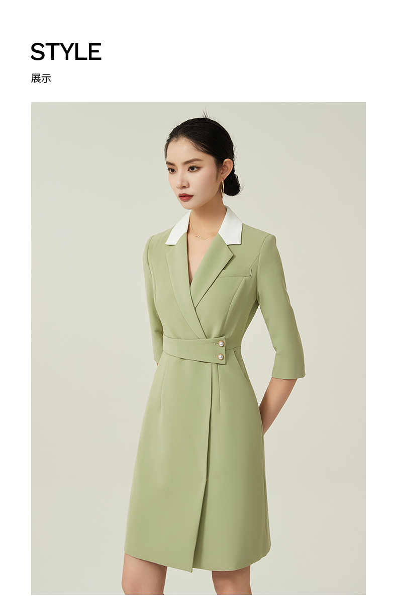 IWY/绿色职业装西装连衣裙女春夏七分袖高级感主持人播音艺考演讲服装Q757