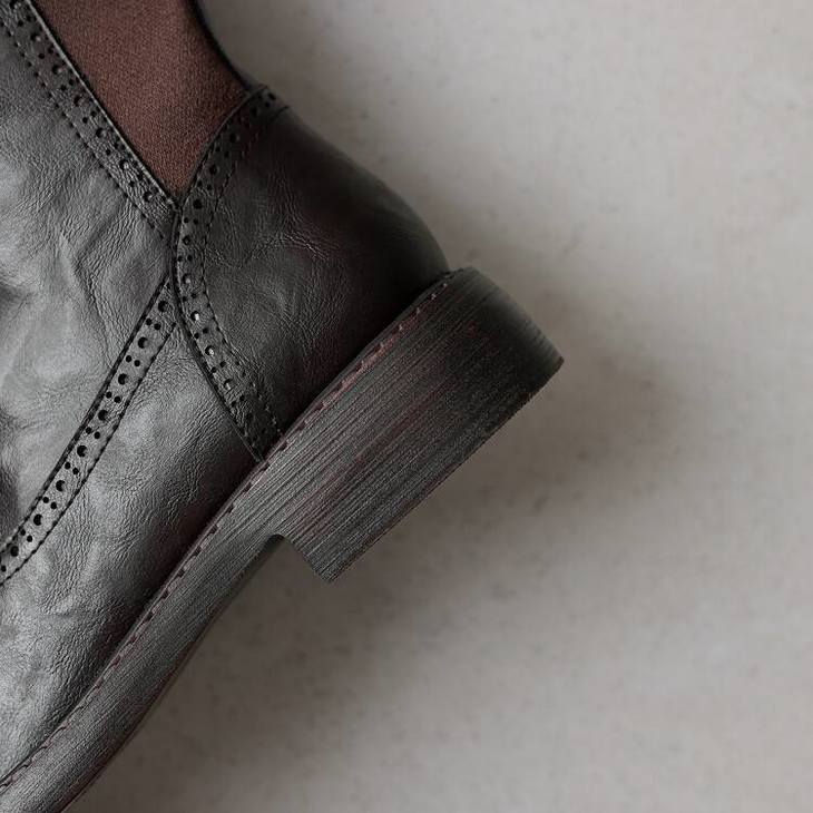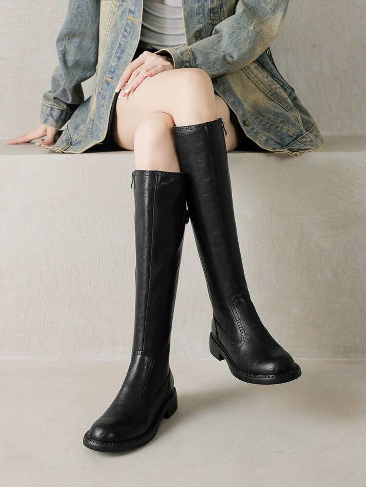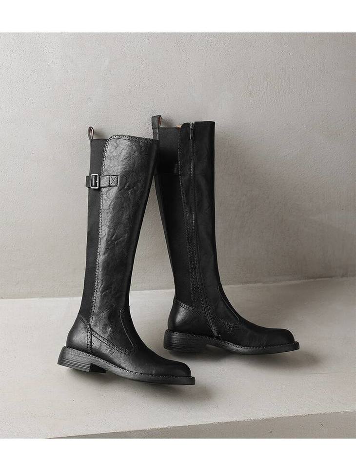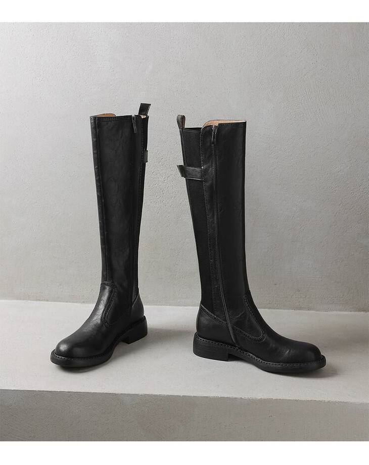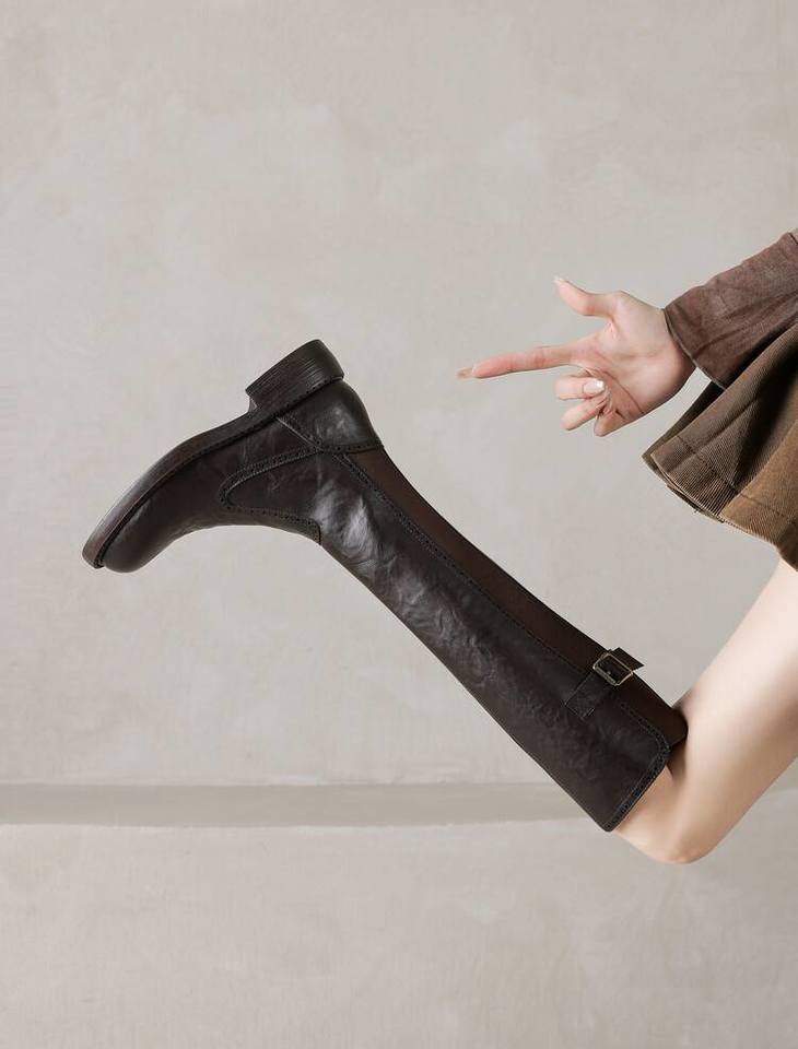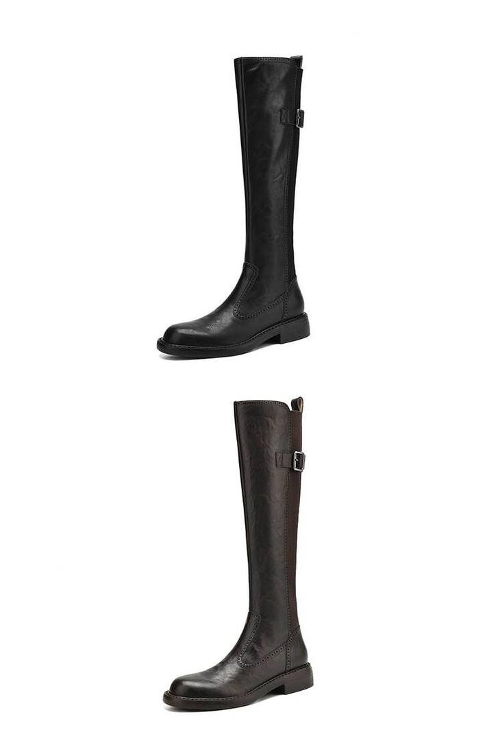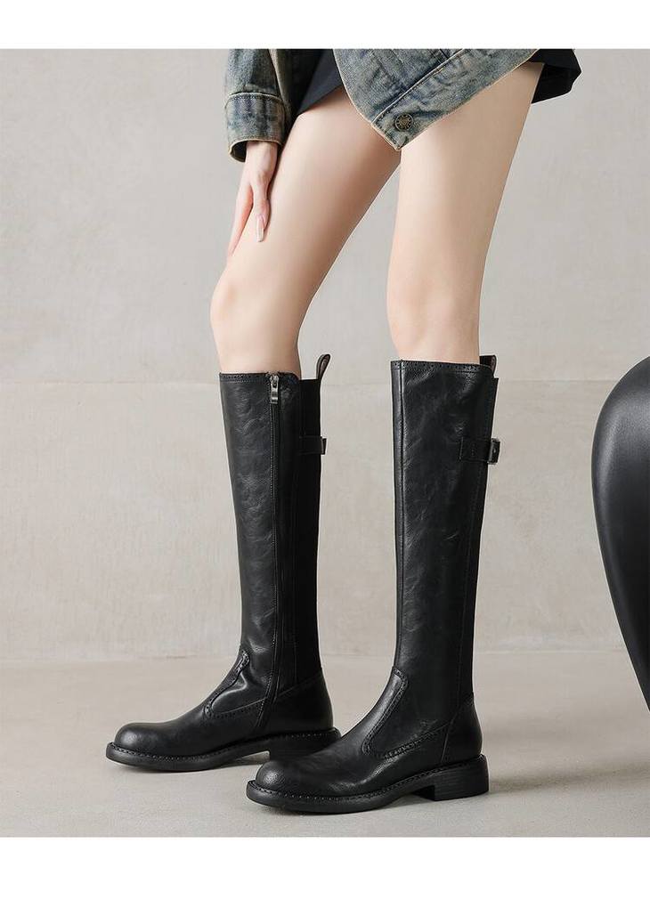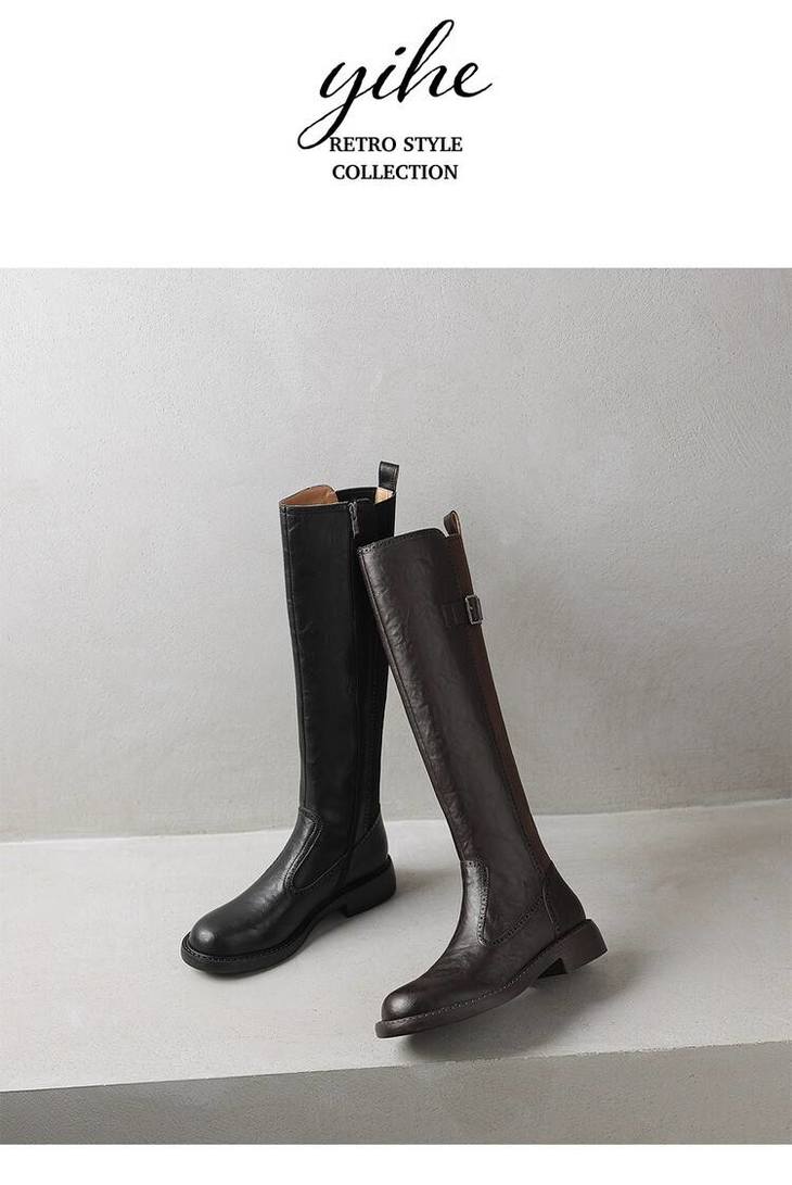 【预售7天】里外全皮棕色新品骑士靴秋冬圆头粗跟侧拉链长靴女KYD&KK9566