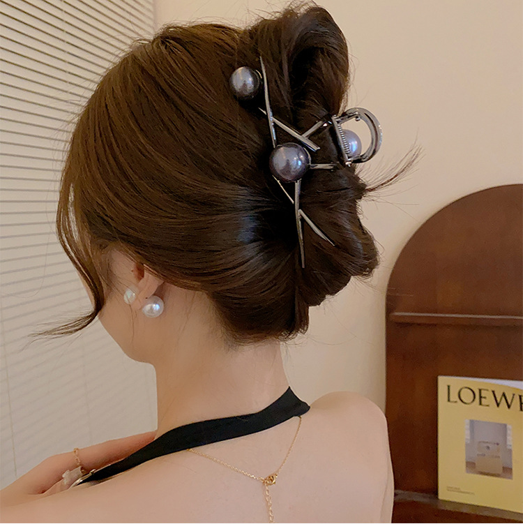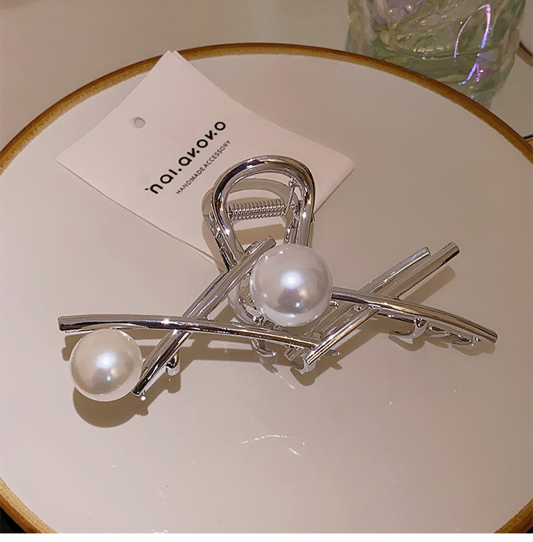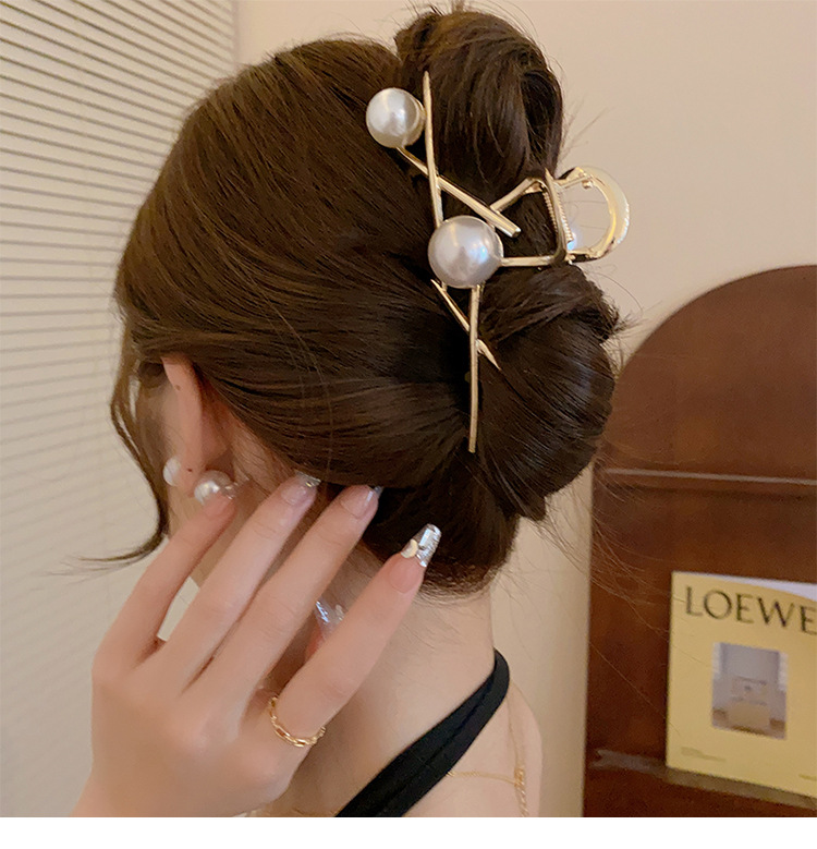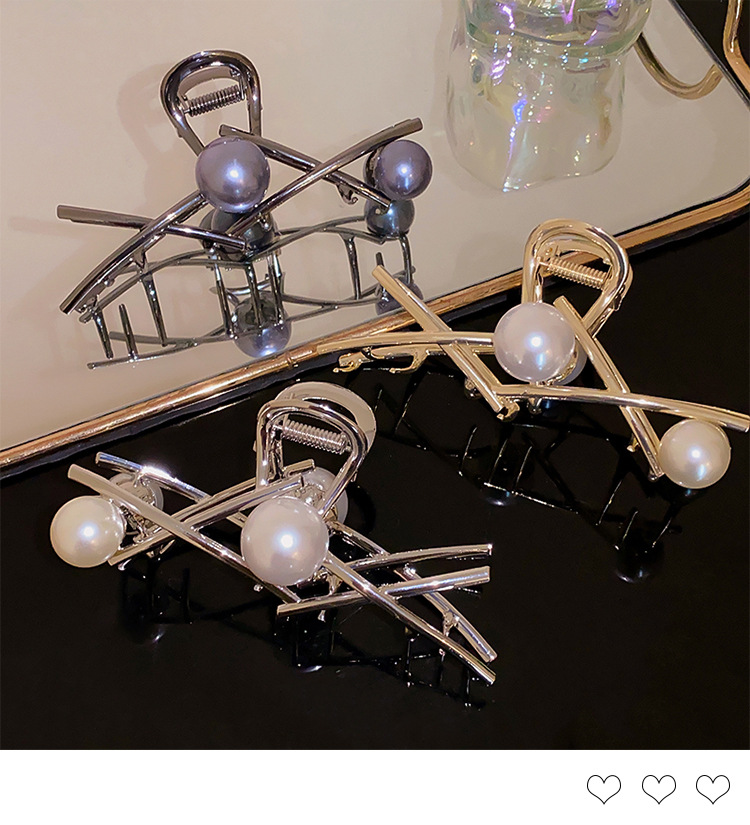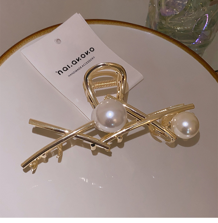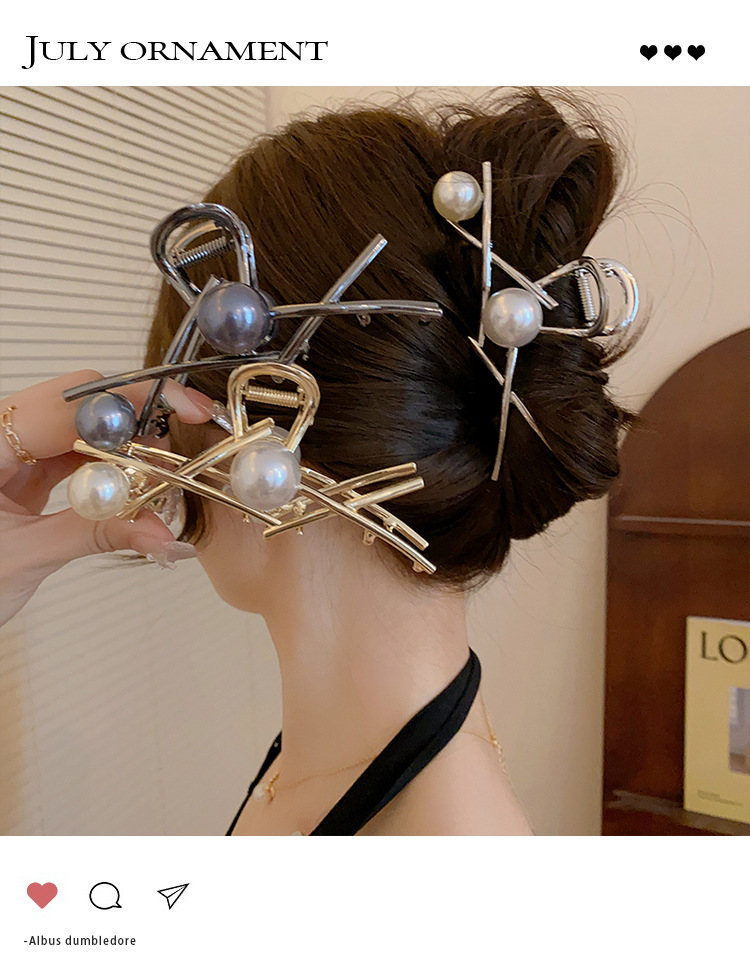 2023新款【珍珠交叉发夹】后脑勺金属发卡夹 气质发夹头饰 大号鲨鱼夹