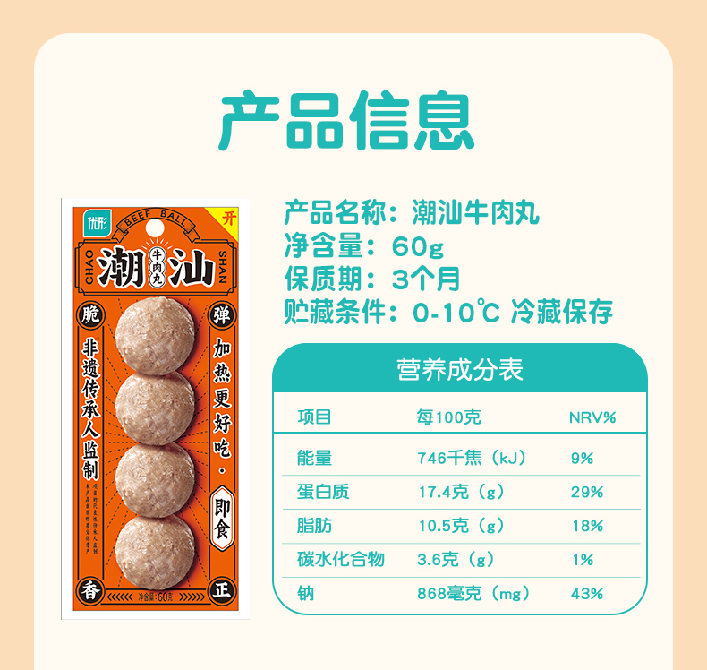 优形潮汕即食牛肉丸 60g/袋