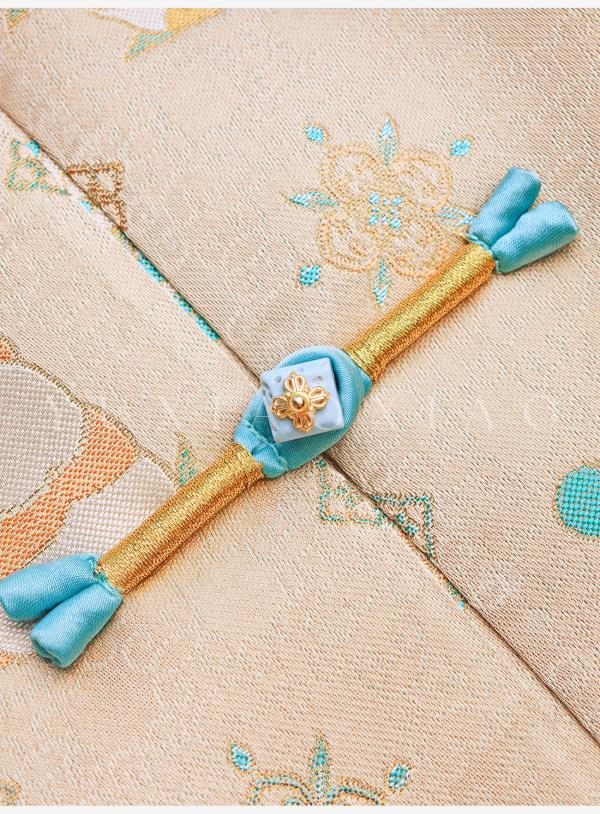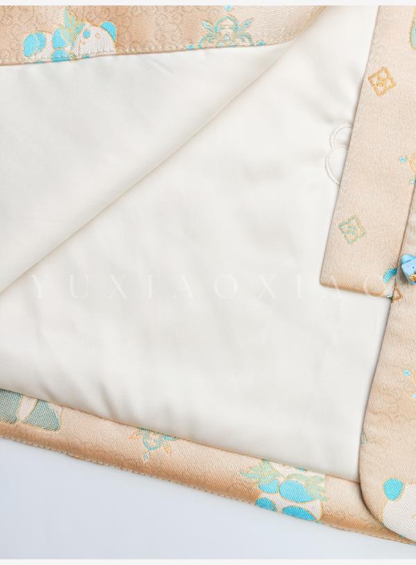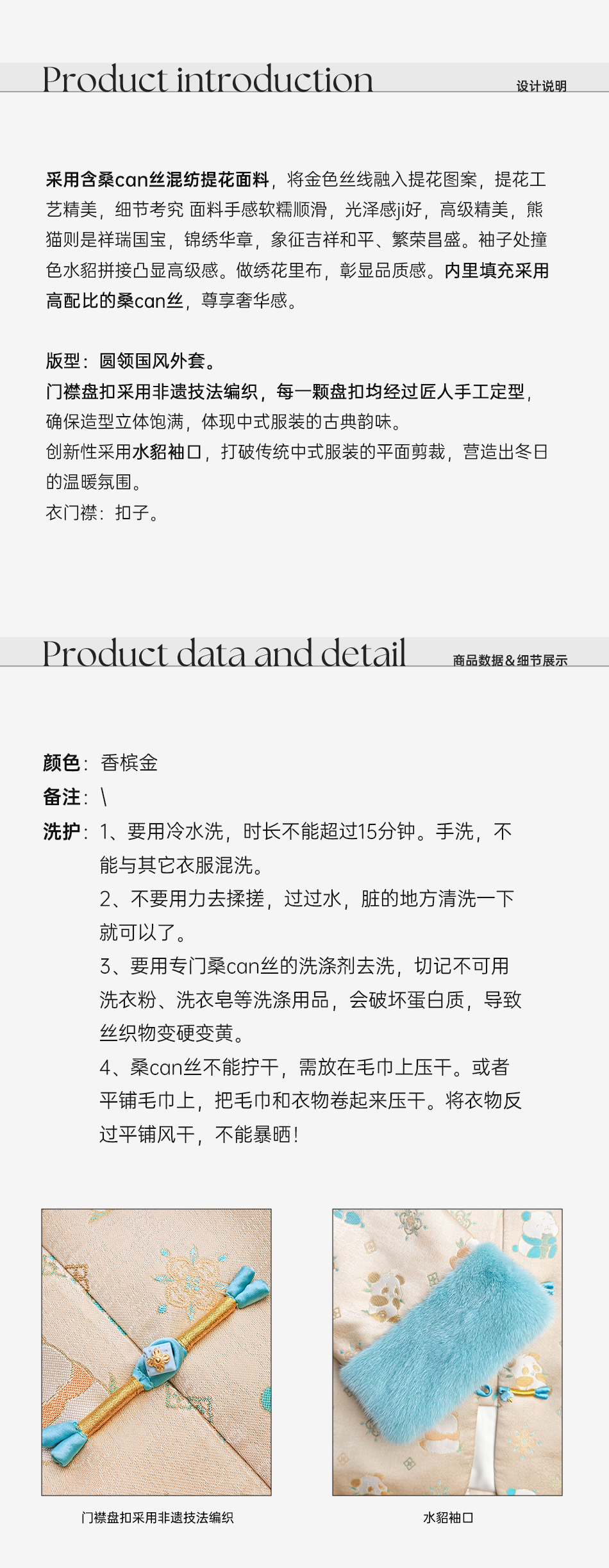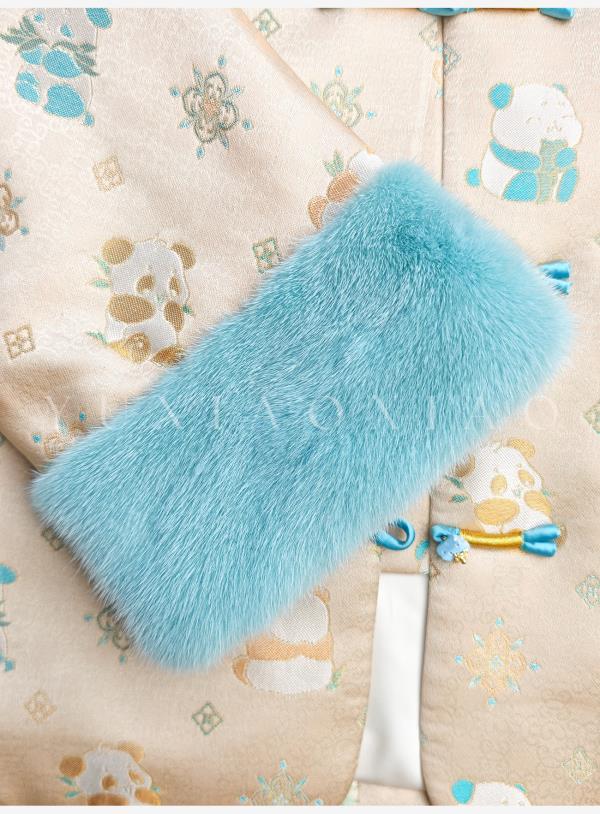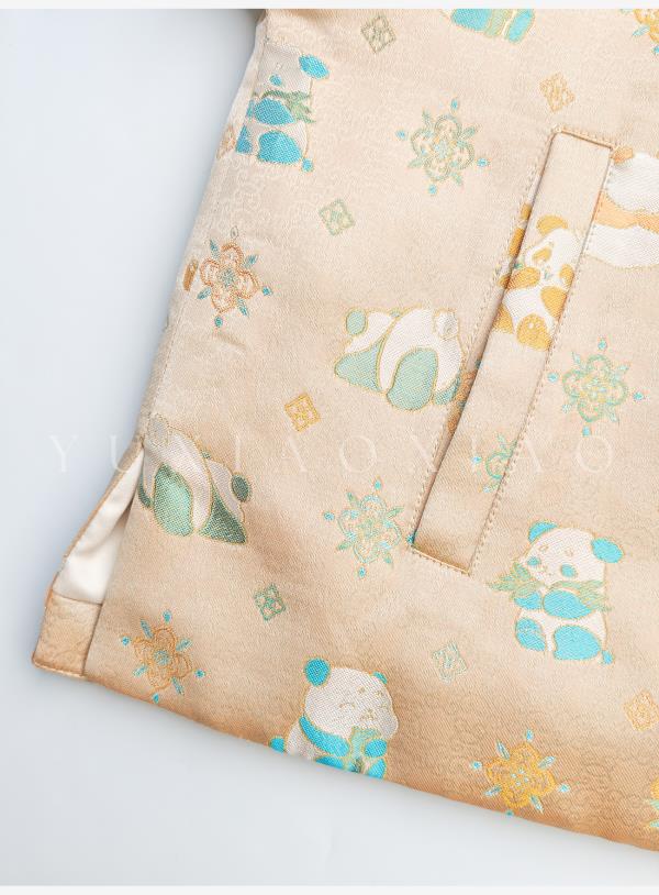 余潇潇【古韵熊猫】桑蚕丝混纺提花撞色水貂袖口盘扣圆领国风外套