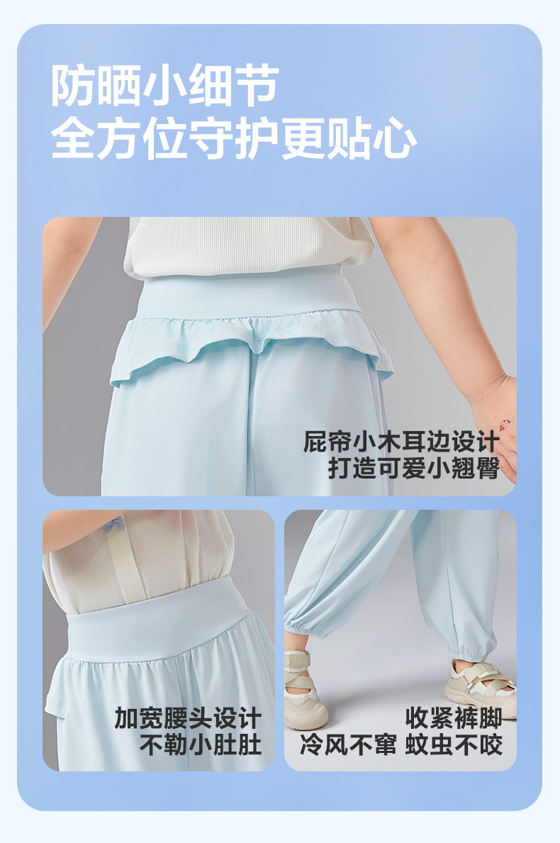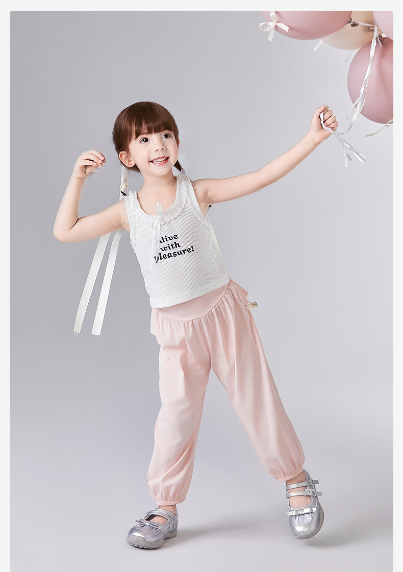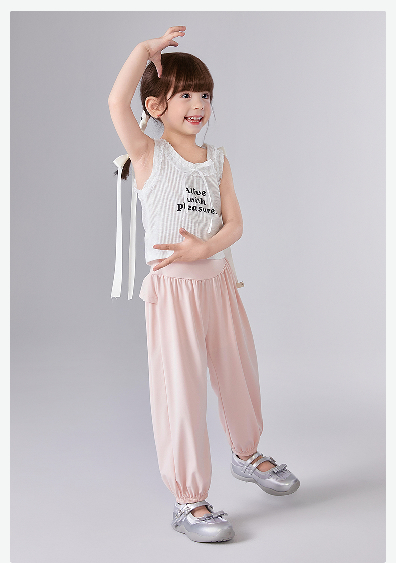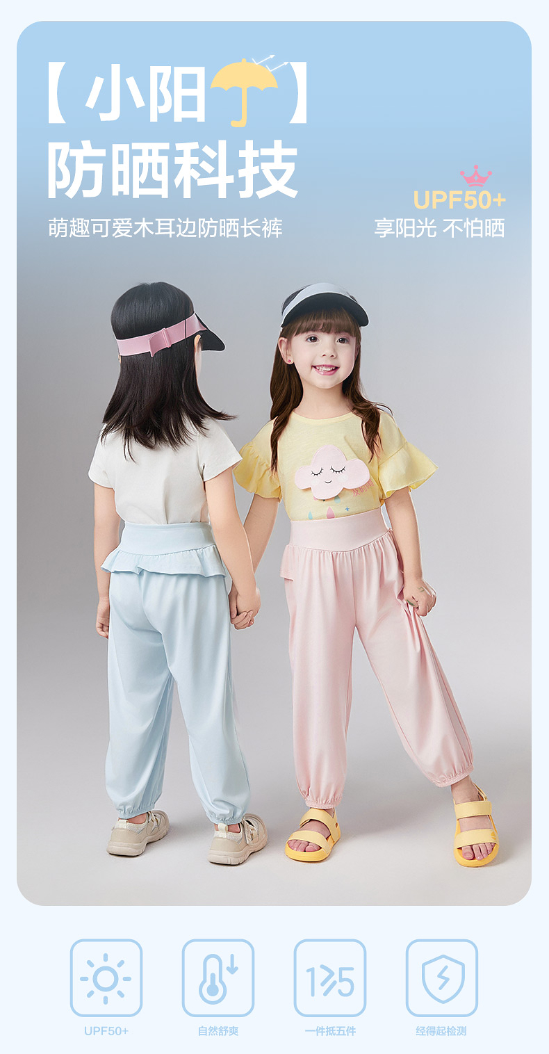 笛莎Deesha 童装女童裤子2025夏新款女童萌趣可爱木耳边防晒长裤
