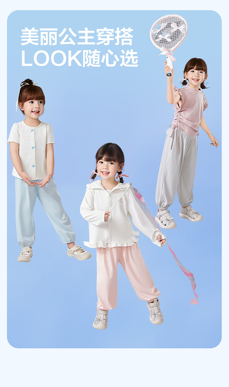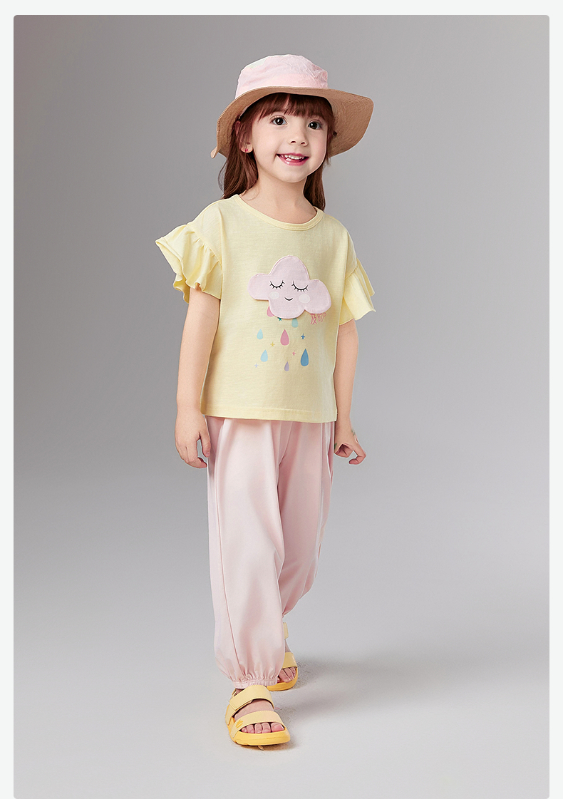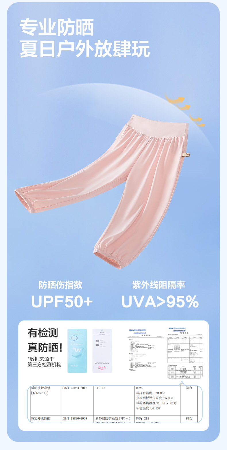 笛莎Deesha 童装女童裤子2025夏新款女童萌趣可爱木耳边防晒长裤