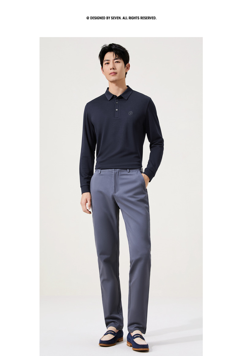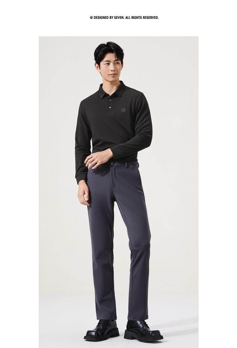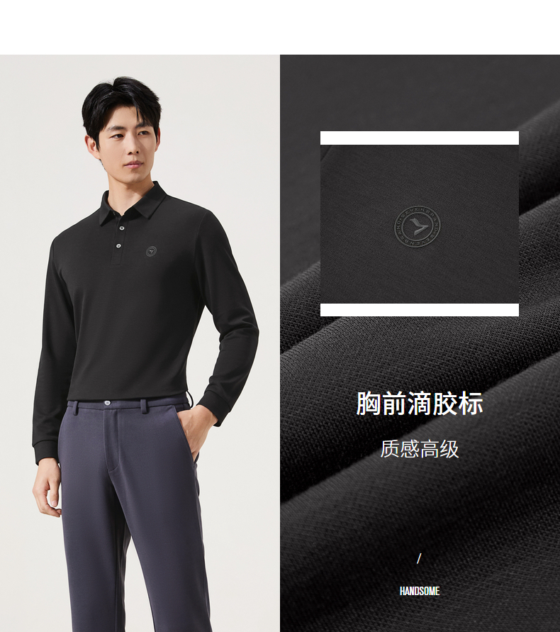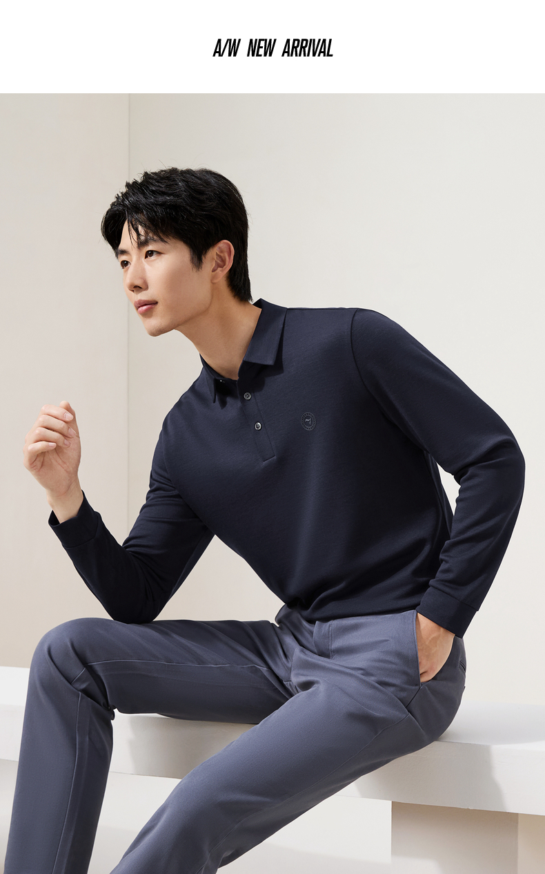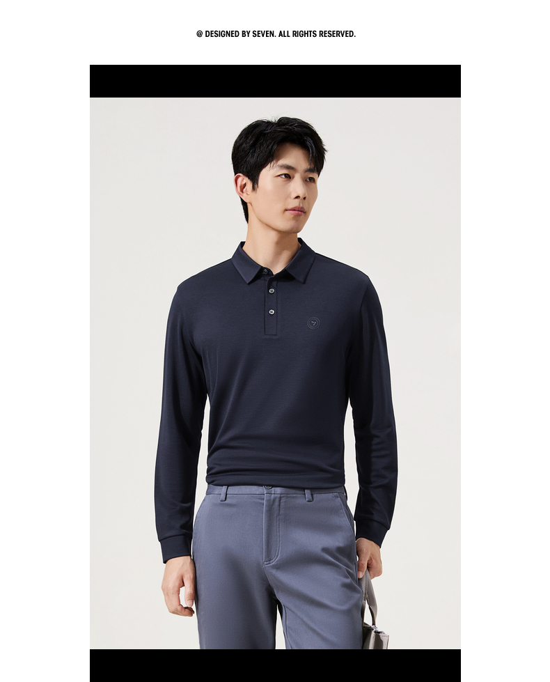 【含羊毛】柒牌长袖Polo衫男士2025秋冬新款商务休闲莫代尔t恤男129T70630