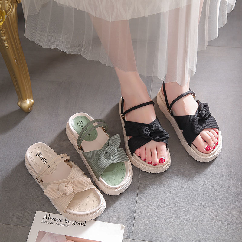 升级款【仙女风~小众厚底拖鞋】网红新款爆款,舒适不磨脚,凉鞋女夏,平底仙女风,罗马厚底两穿凉拖-QQ