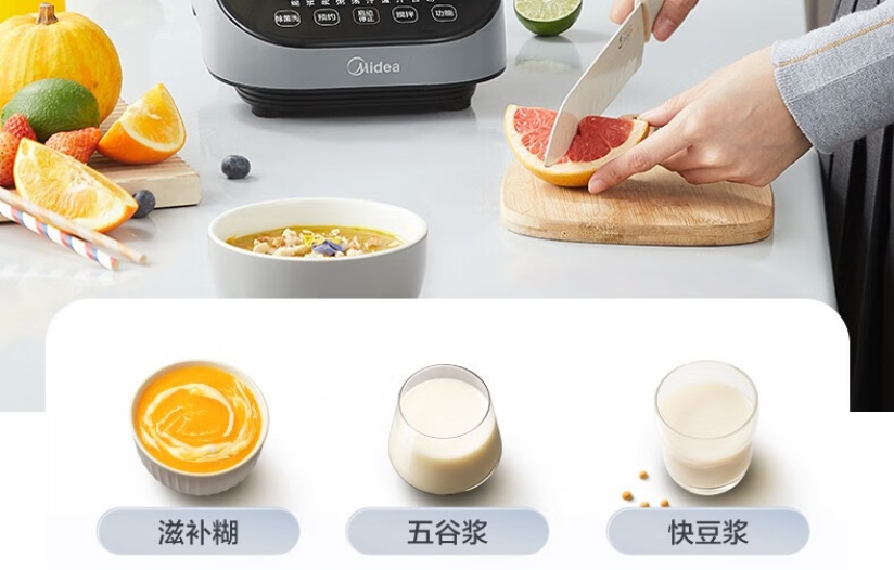 美的 破壁机 家用豆浆机 智能预约轻音绞肉机榨汁机多功能迷你果汁机宝宝辅食料理机 MJ-CBL1096
