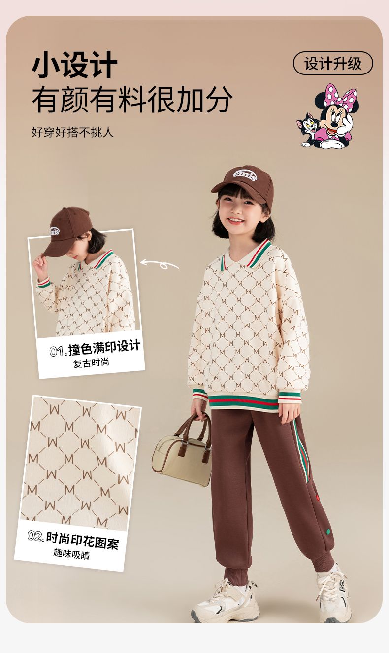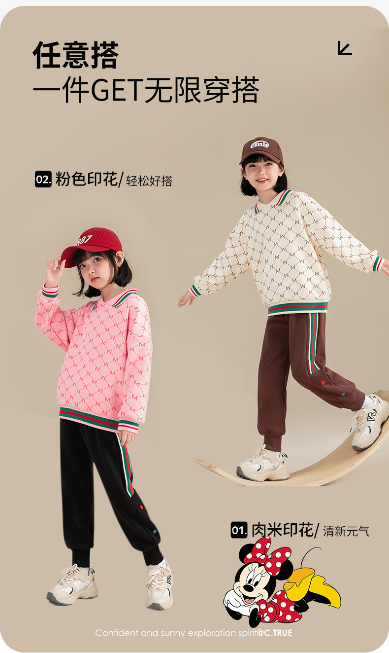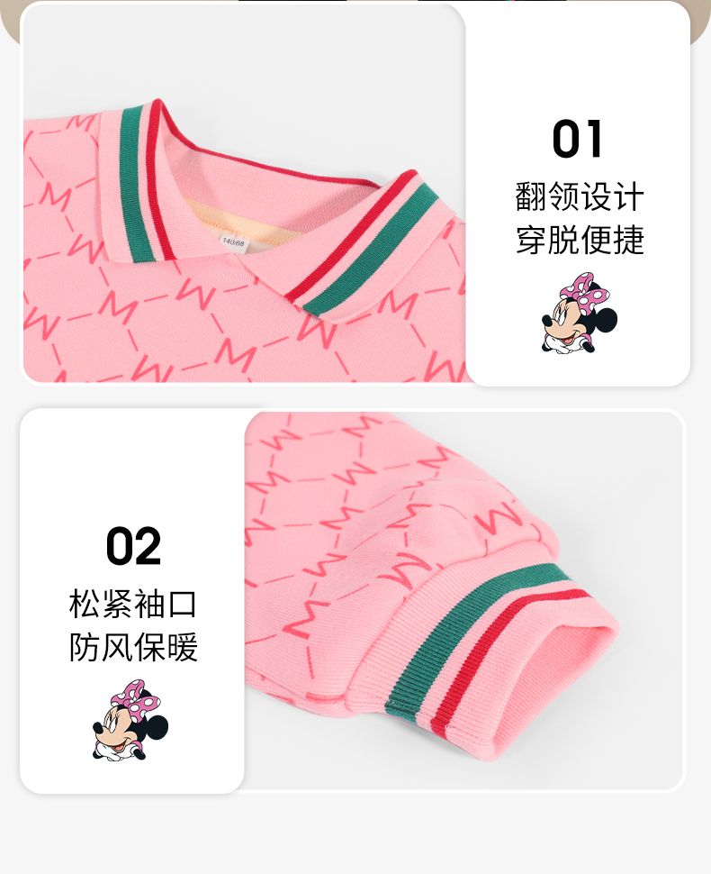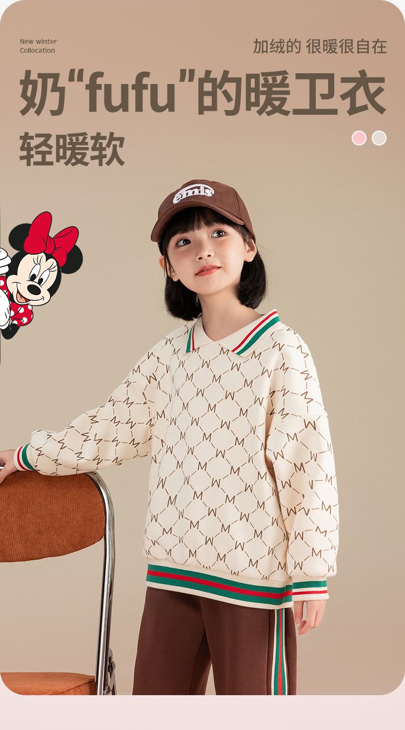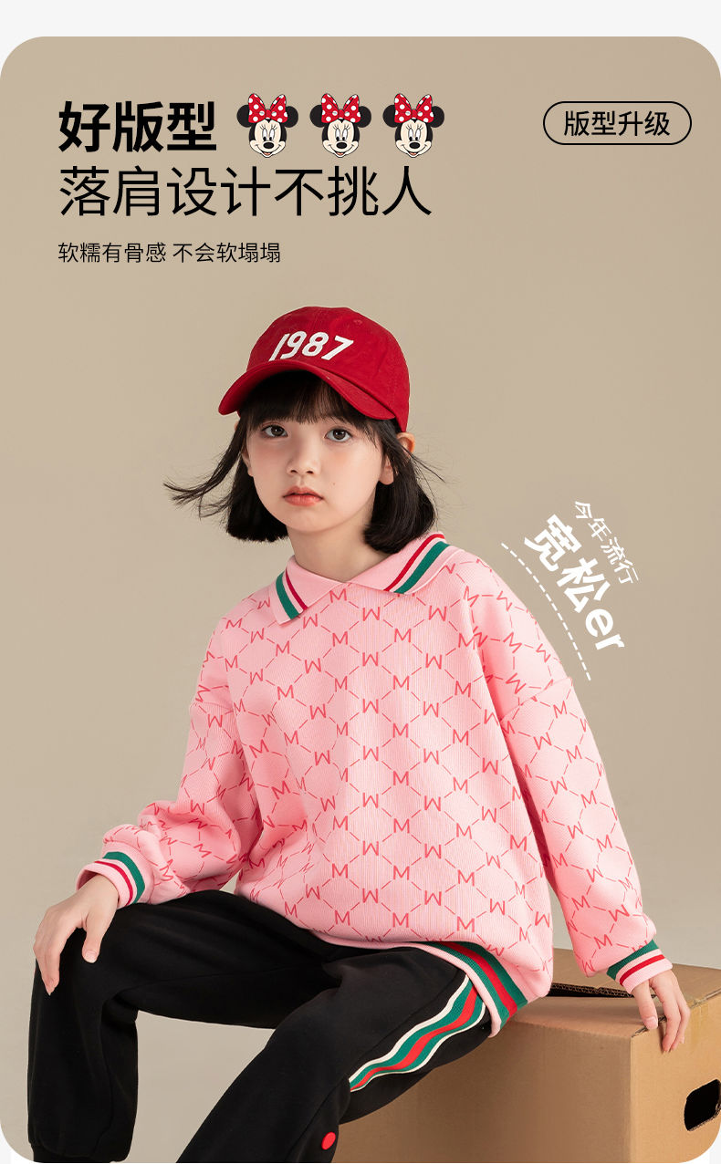 迪士尼女童加绒卫衣2024新款儿童plol领上衣长袖女大童打底衫冬季