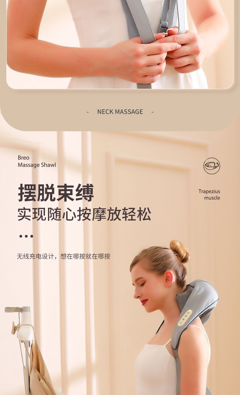 【低头族养护!多功能披肩颈椎颈肩斜方肌按摩器】按摩仪加热揉捏披肩,创新双戴法,解锁新舒适,轻松解放双手,使用方便不累赘。ry