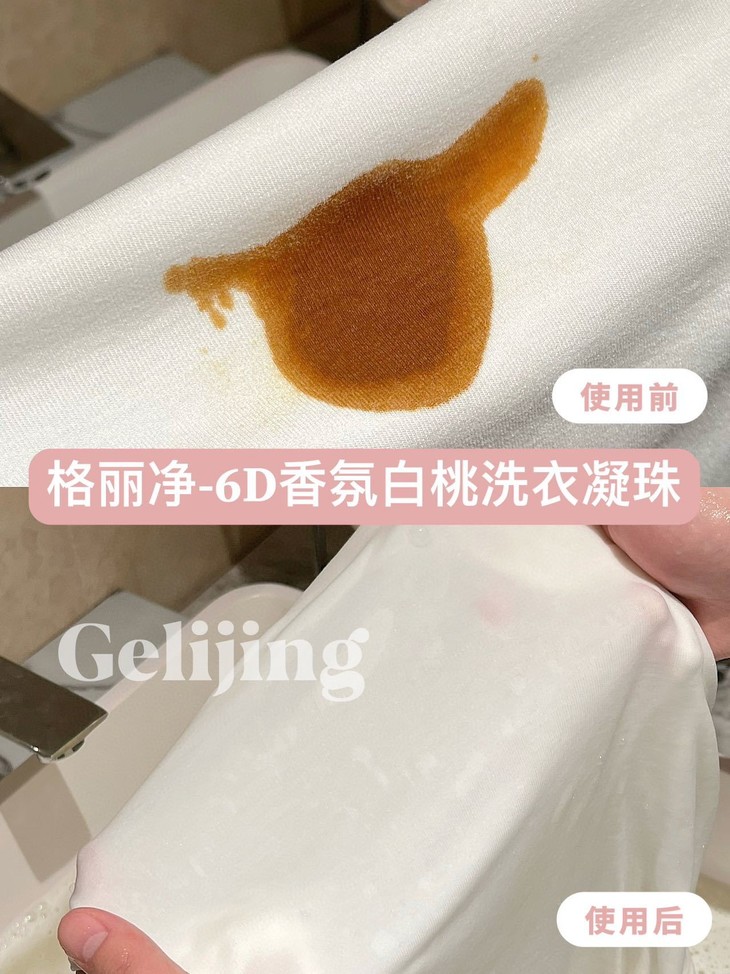 而且去污力max,顽固污渍拜拜啦~ 轻松应对日常各种小意外,保持衣物洁净如新! 🌿温和不伤手,连敏感肌的宝贝们也能放心使用哦!💕 快来一起告别瓶瓶罐罐,拥抱「格丽净-6D香氛白桃洗衣凝珠」的便捷与浪漫吧!