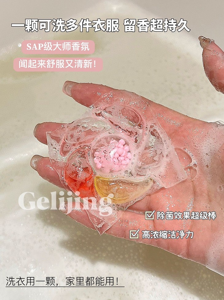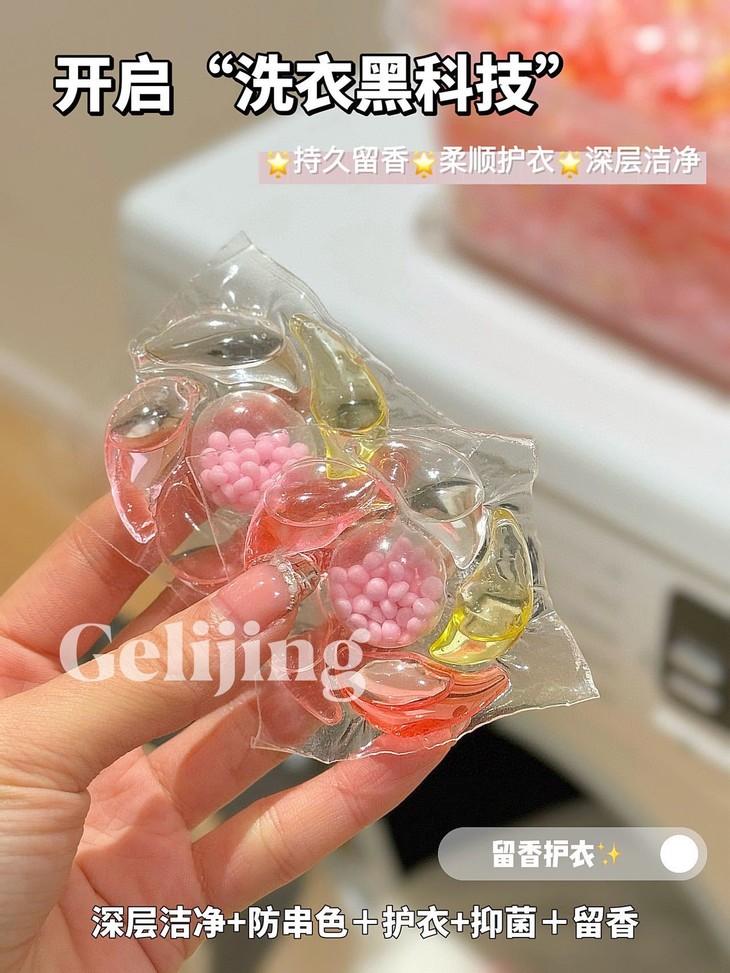 这款洗衣凝珠不仅含有高效的清洁成分 而且还有天然的香氛精华 当你把衣物放入洗衣机时,只需加入一颗凝珠,就能轻松解决洗衣难题! 深层清洁衣物,让污渍无处可藏💥💥