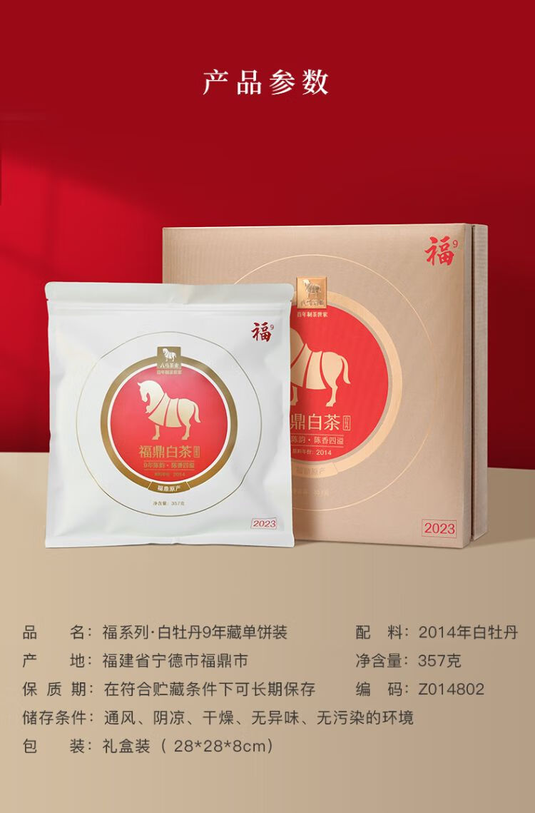 八马茶业福鼎白茶·白牡丹9年单饼 357g/盒