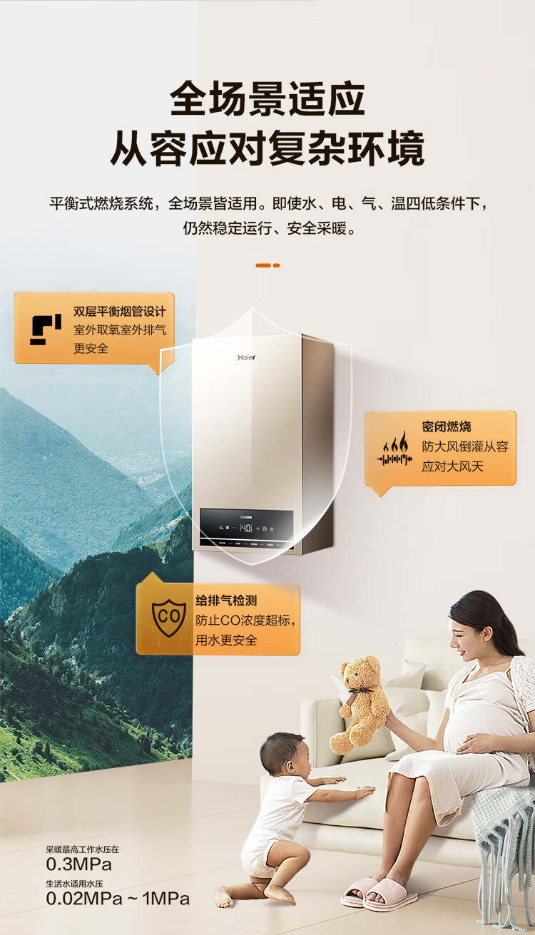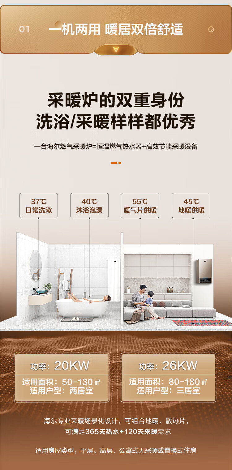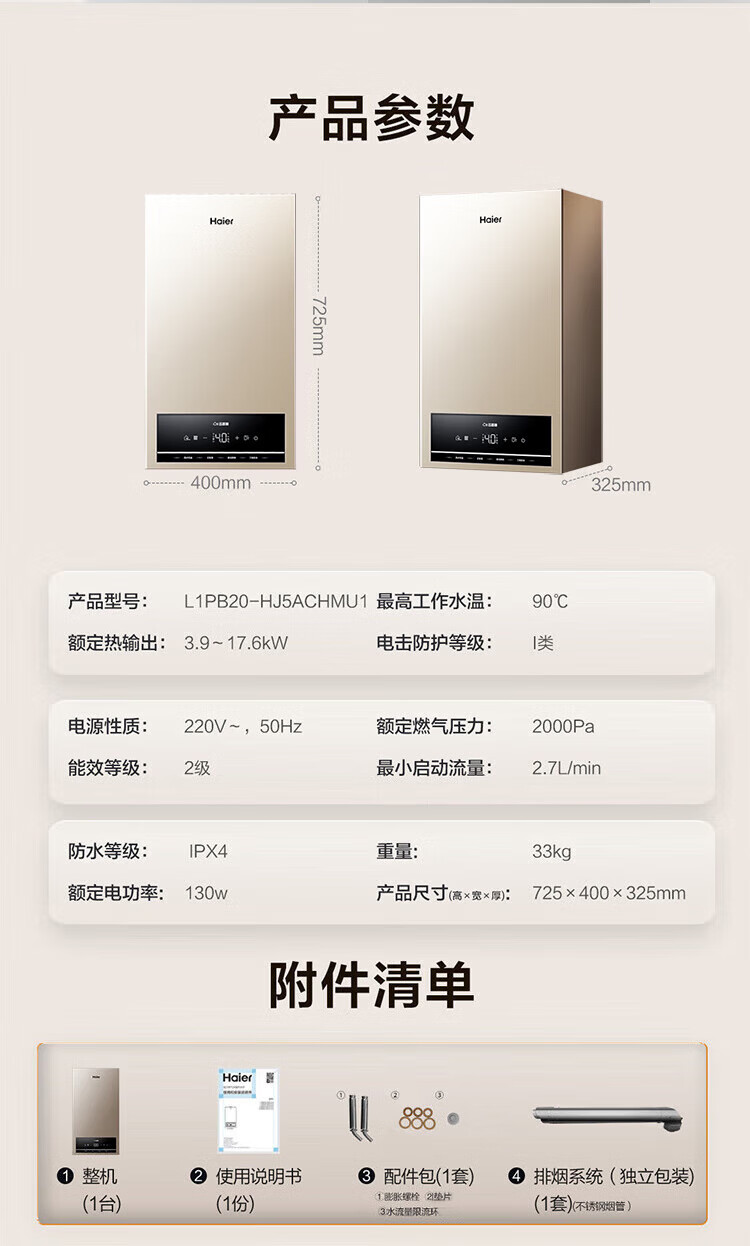 海尔(Haier)燃气壁挂炉天然气板换式静音采暖炉家用地暖供暖全屋热水节能WIFI智控多点恒温以旧换新L1PB20-HJ5