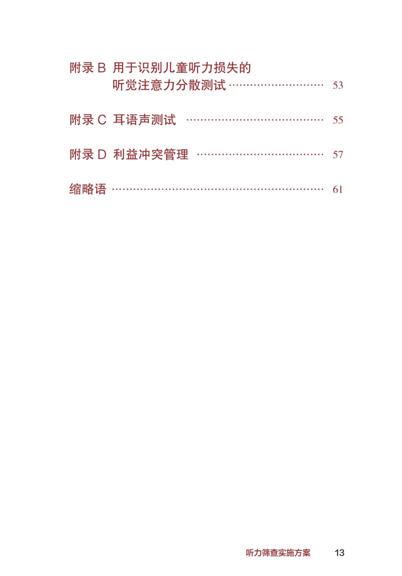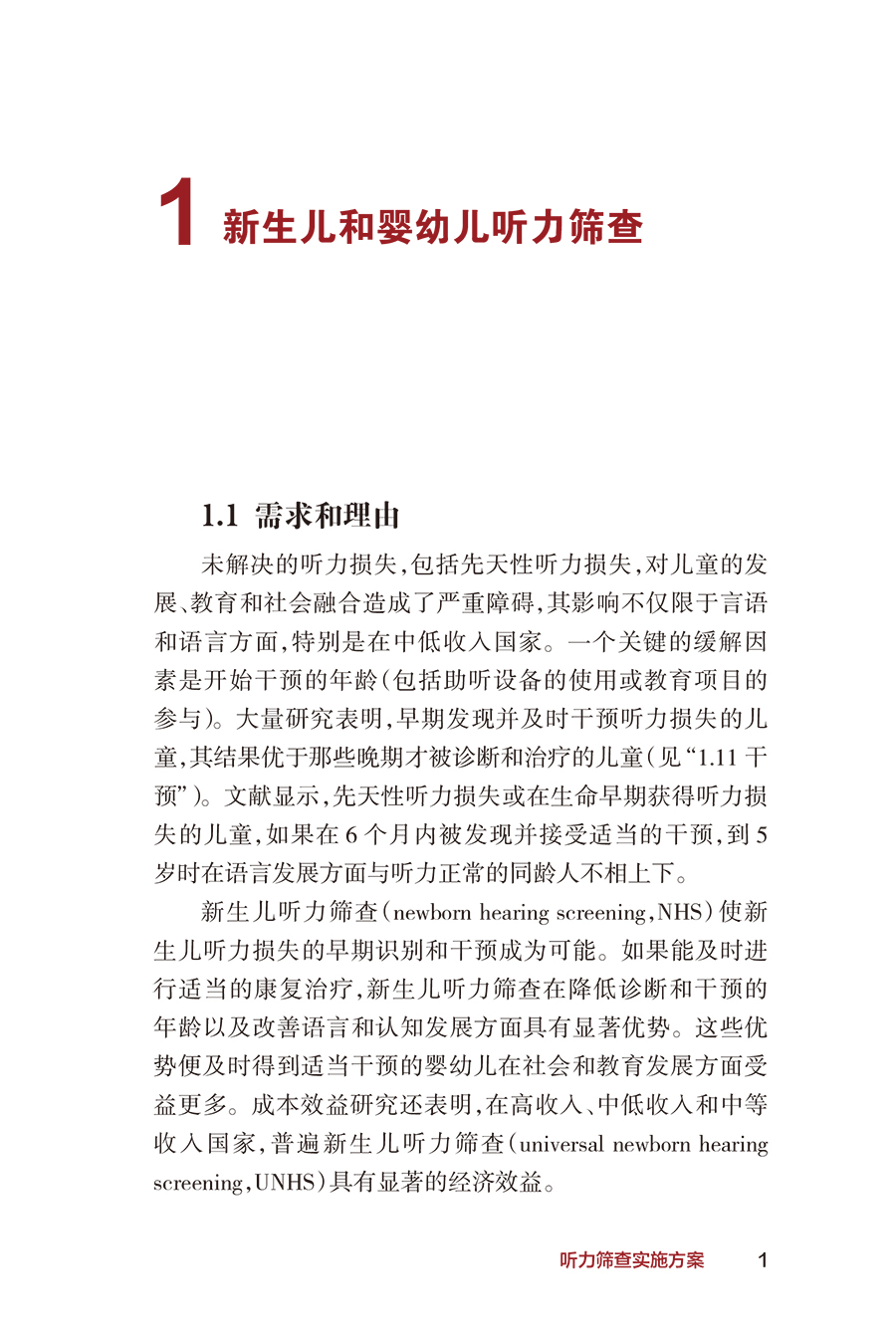 本书为《世界听力报告》的内容延伸,旨在为各国提供技术指导,帮助其实施听力筛查计划。着重介绍了在不同年龄组进行听力筛查和干预的方法和技术,包括新生儿、儿童和老年人等。提供了基于证据的实践指南,帮助各国卫生部门和相关组织开展有效的听力筛查和干预工作,提高听力保健水平。本书为制订听力筛查项目提供了指导,涵盖需要考虑的重要因素,例如筛查对象、项目目标、筛查频次、使用工具等。每部分都探讨了上述内容,以及其他在规划阶段必须回答的相关问题。此外,每部分还提供了基于证据的选项,并讨论了不同选项的优缺点,以便各国可以选择最适合当地国情的方案。