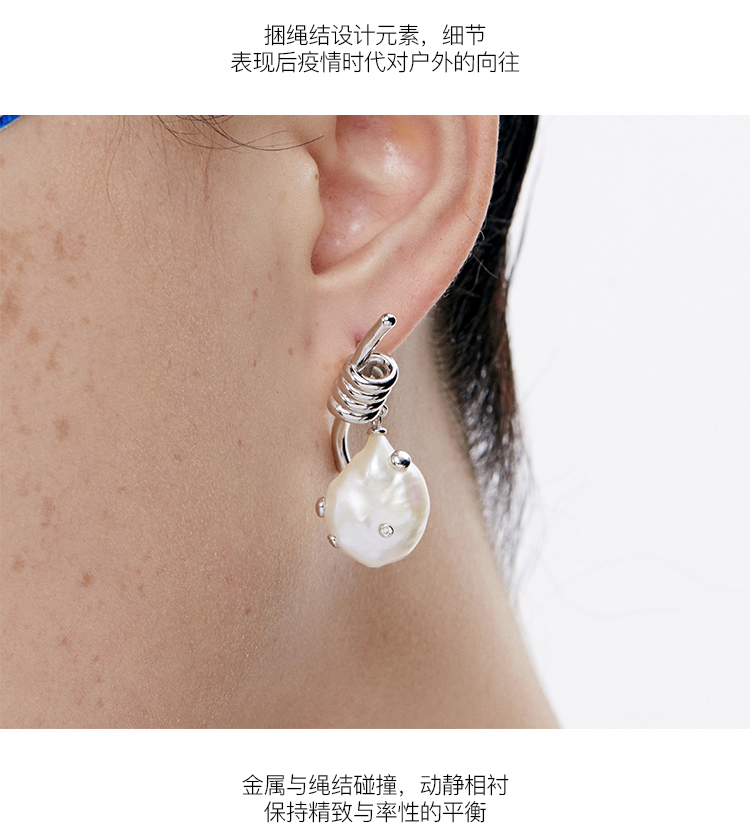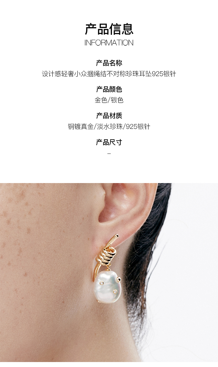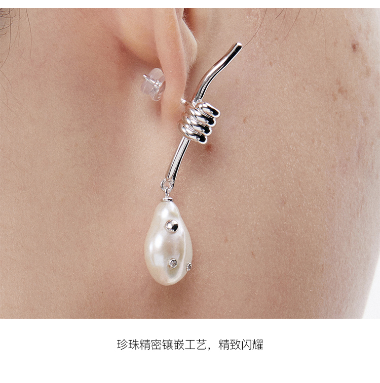 lost in echo 设计感轻奢小众捆绳结不对称珍珠耳坠925银针 商品图5
