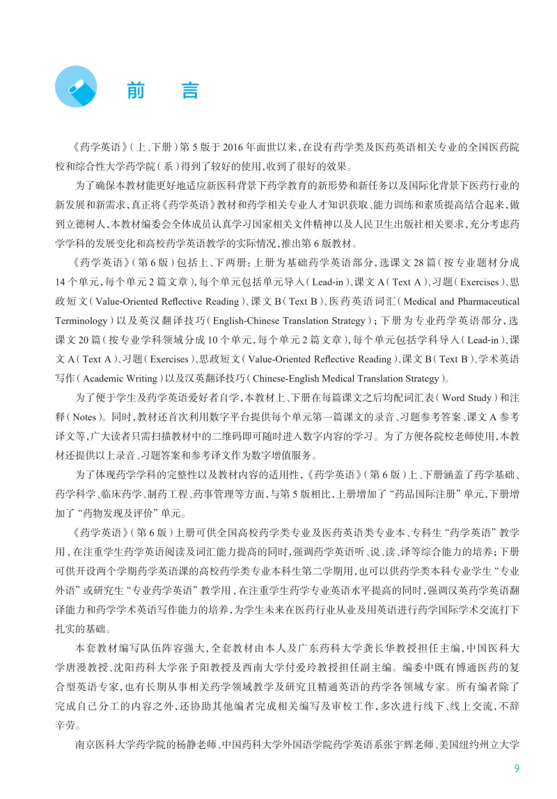 药学英语(下册)第6六版 十四五规划教材全国高等学校药学类专业第九轮规划教材 史志祥 龚长华 供药学类专业用 人民卫生出版社