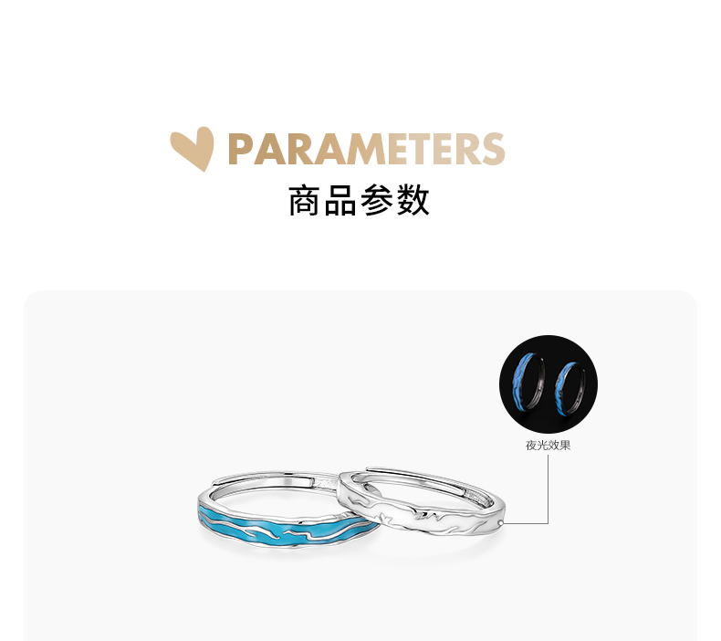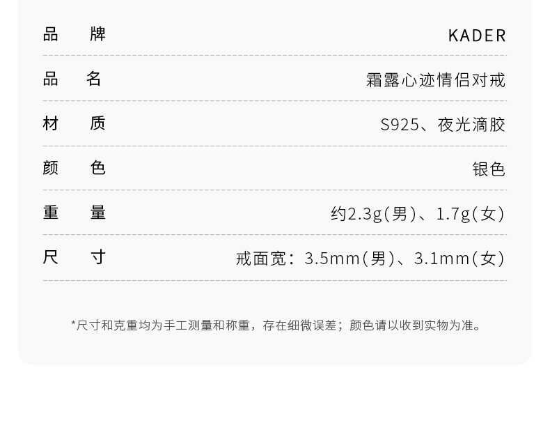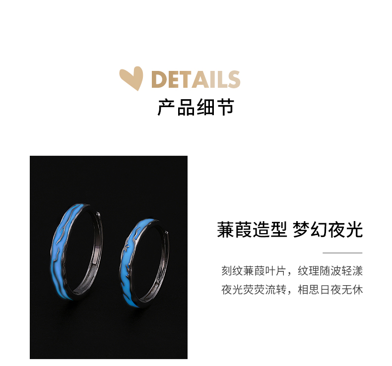 【夜光】卡蒂罗/KADER 霜露心迹情侣对戒 蒹葭苍苍白露造型梦幻可发光原创开口可调节素圈一对 钟爱久久甜蜜饰爱