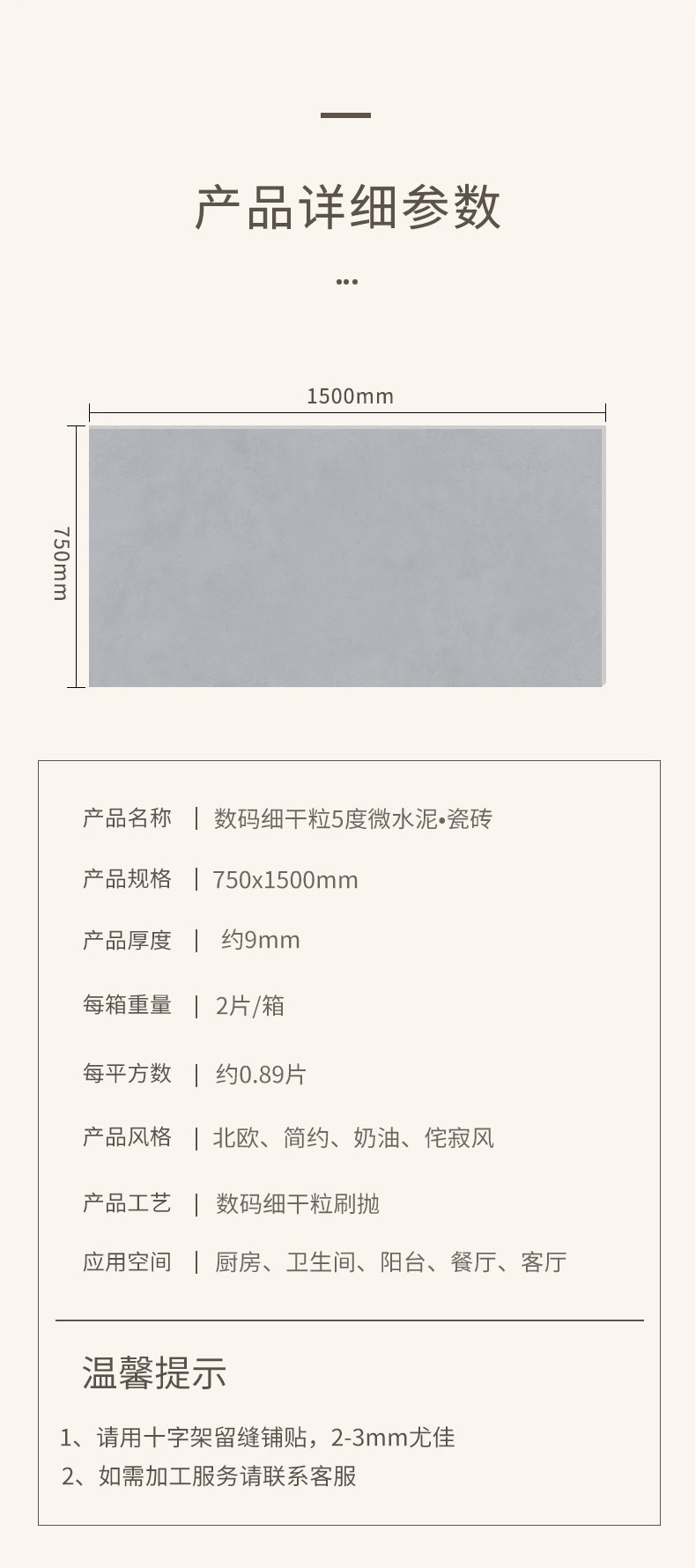 瓷砖地板客厅5750x1500地砖度水泥数码细干粒侘寂风素色微哑光 商品图2